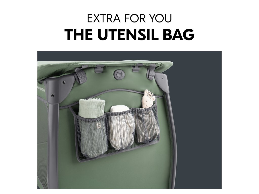 EXTRA ÚLOŽNÝ PROSTOR // Cestovní postýlka je vybavena praktickými síťovými kapsami, tak abyste mohli mít vše potřebné stále po ruce.