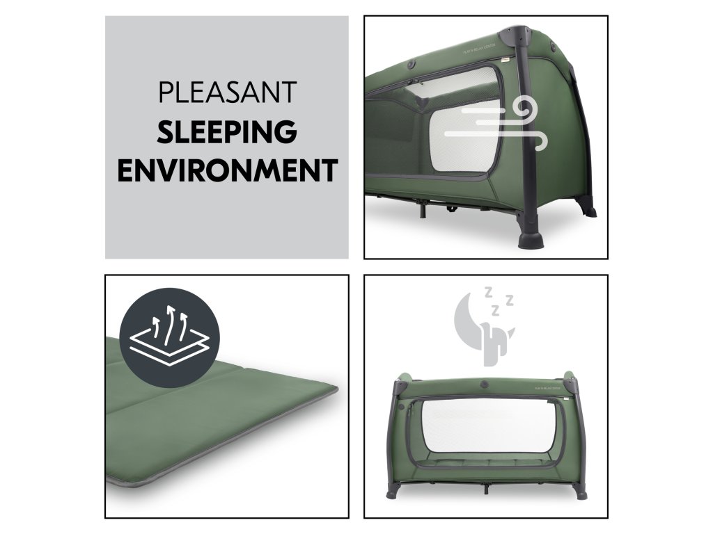 VZDUŠNÁ, PRO PŘÍJEMNÝ SPÁNEK // Postýlka je vybavena velkými síťovanými boky, které zajišťují dobrou cirkulaci vzduchu a tím i příjemné prostředí pro spánek, k příjemnému pocitu přispívá i matrace z pohodlného vzdušného materiálu.