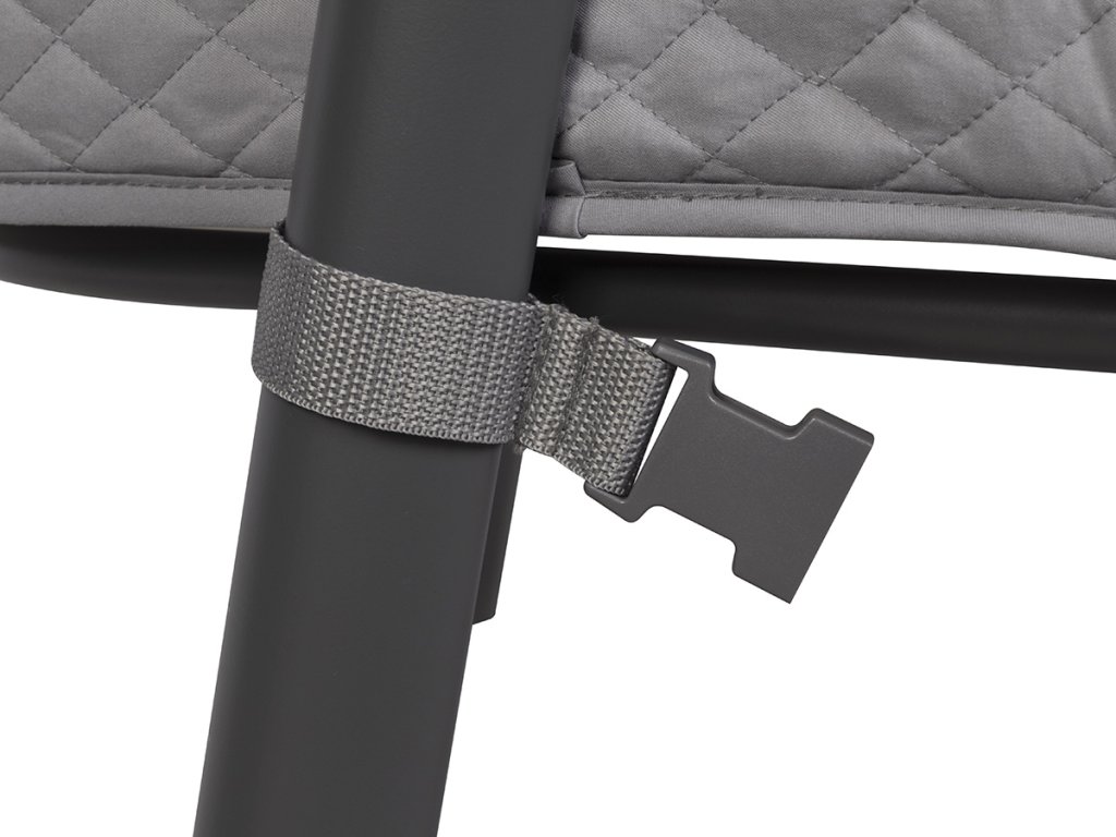 - Automatická regulace podpěr: Umožňuje přizpůsobení postýlky ik postelím bez mezery od podlahy.