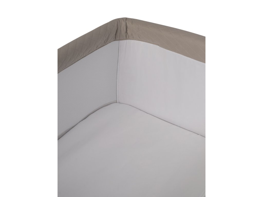 - Bezpečnostní branka: Vysoká 15 cm, brání neúmyslnému přesunu dítěte na matraci rodičů.