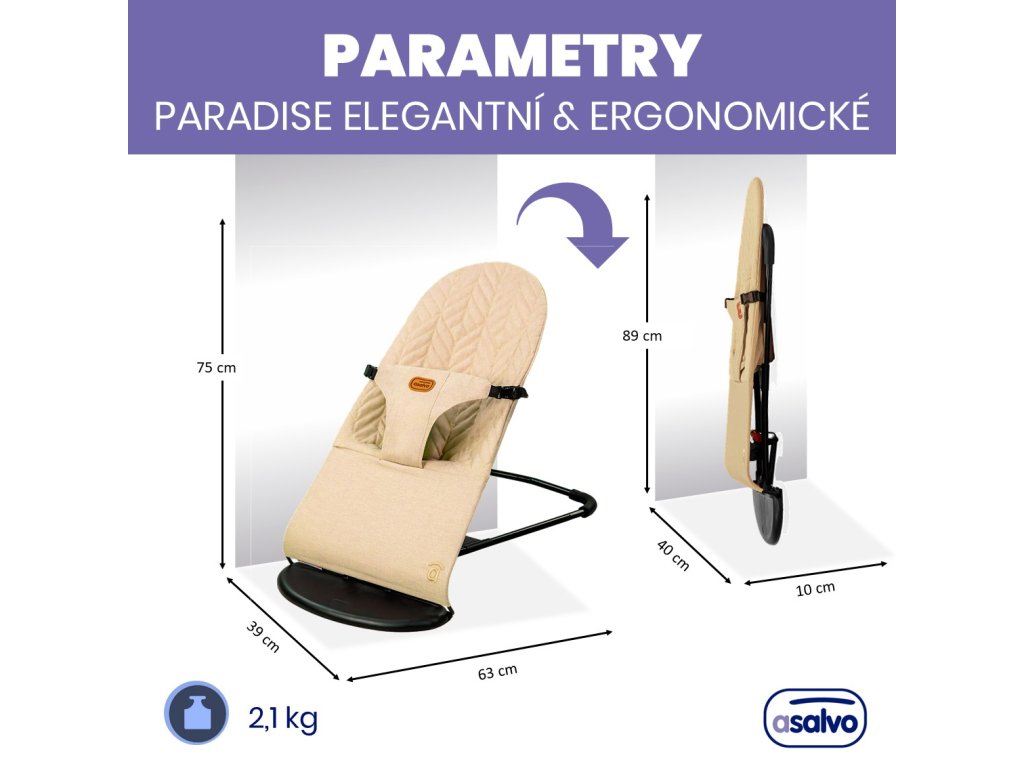 Ergonomické lehátko ASALVO PARADISE je vhodné k odpočinku pro děti od narození do 9 kg.