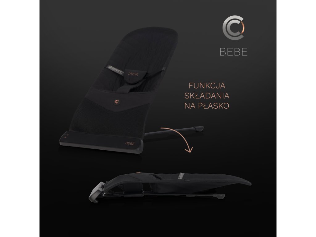CAVOE BEBE je víc než jen obyčejné dětské lehátko. Je součástí exkluzivní kolekce CAVOE HOME, která přináší do vašeho domova eleganci a funkčnost. S hlubokou černou barvou a kovovými doplňky v odstínu růžového zlata se lehátko stane stylovým doplňkem každého moderního interiéru, ať už je to obývací pokoj, jídelna nebo ložnice.