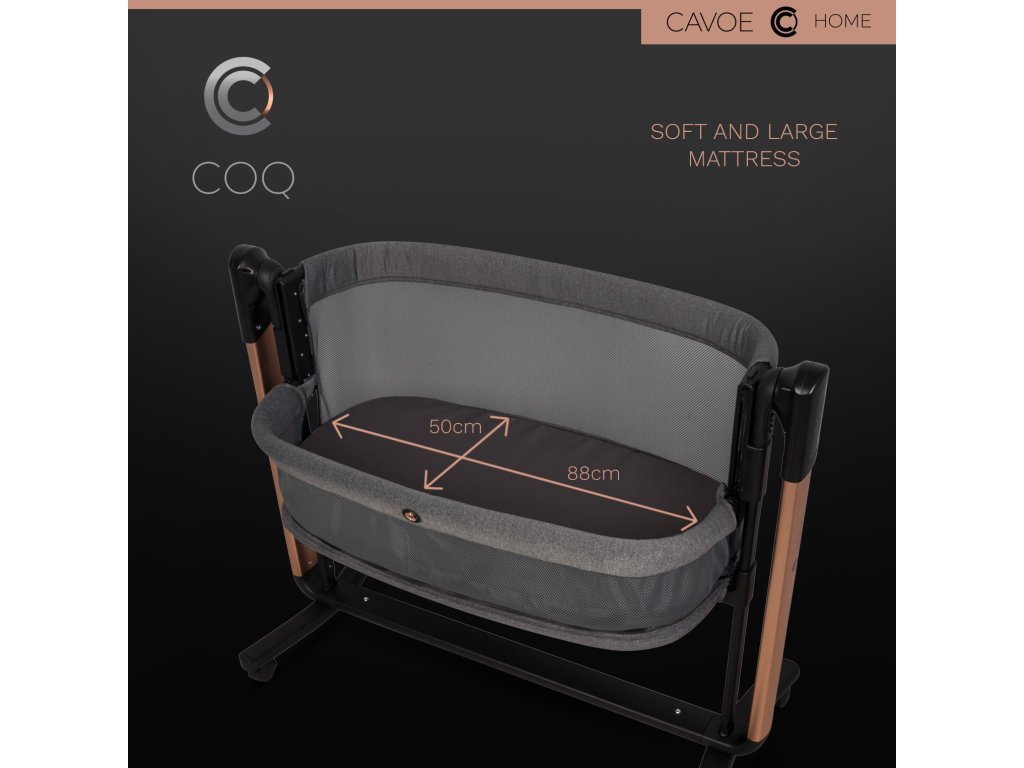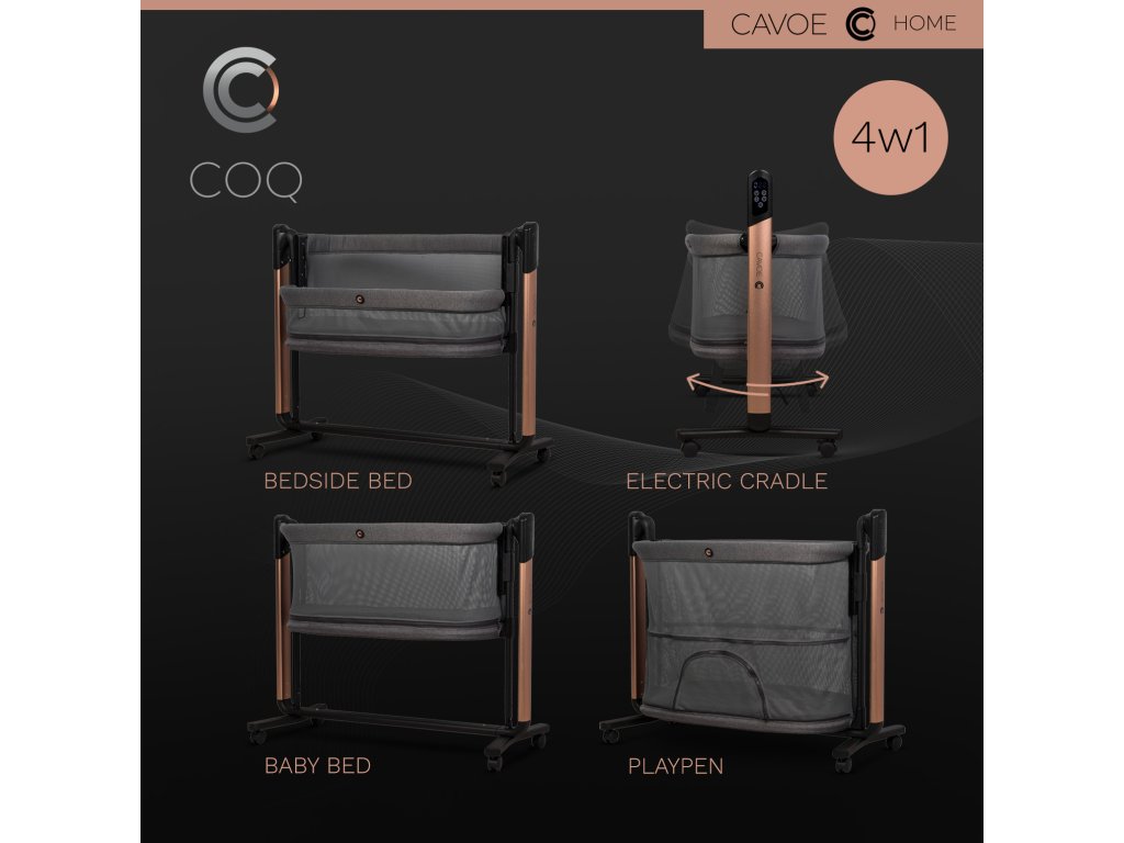 CAVOE COQ je inovativní a multifunkční produkt ze série CAVOE HOME, který kombinuje funkce elektrické kolébky a dětské postýlky. Tento produkt je navržen tak, aby poskytoval maximální komfort pro vaše dítě a zároveň se stal stylovým doplňkem vašeho domova.