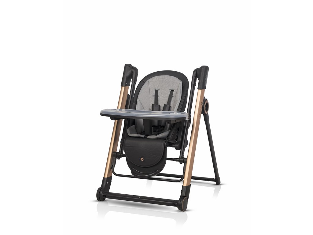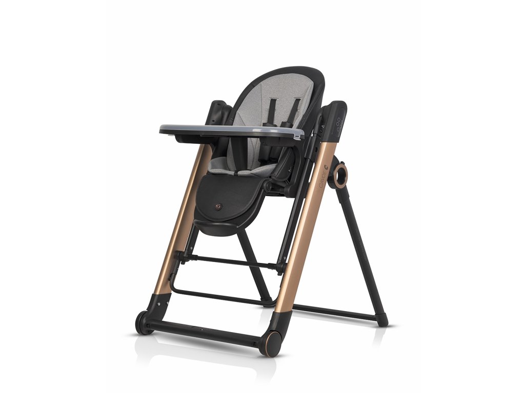 - Jídelní židle: Má nastavitelné opěradlo s výsuvem sedáku, 6 úrovní výšky, dvojitý tác a velká kola s brzdami pro snadný pohyb.