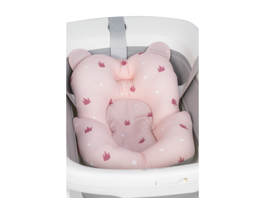 Součástí balení je měkké koupací lehátko, které je speciálně navrženo pro děti od narození do 6 měsíců: • Nastavitelná výška a sklon pomocí montážních pásů • Podpírá dítě ve správné poloze během koupání • Vyplňováno voděodolnou výplní – rychle schne po použití • Měkké a elastické – maximální pohodlí pro nejmenší • Jednoduché připevnění díky speciálně vyprofilovaným okrajům vaničky