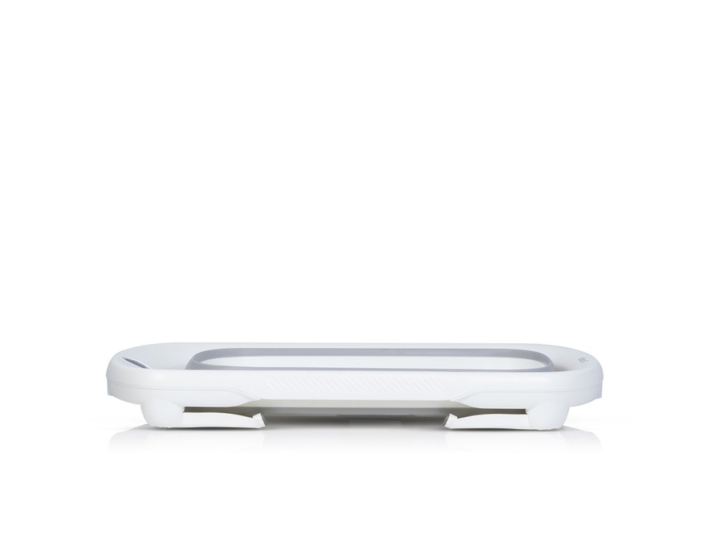 - Skládací nožičky a elastická silikonová sekce • Vanička se skládá naplocho – snadné skladování v koupelně • Po rozložení můžete vaničku postavit: