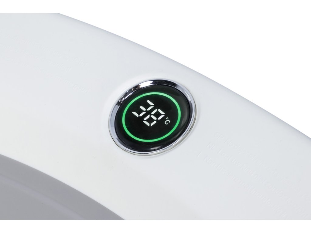 Zapomeňte na tradiční měření teploty loktem! Vanička Colibro Space je vybavena vestavěným digitálním termometrem: • Dotykové ovládání – jedno dotykem aktivujete měření na 10 sekund • Barevná LED indikace pro okamžitou kontrolu: