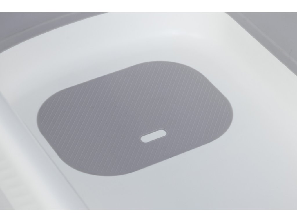 Odtokový systém: - Silikonový uzávěr pro snadné vypouštění vody • Stačí vložit vaničku do vany nebo sprchového koutu a otevřít zátku • Rychlé a hygienické vyprázdnění