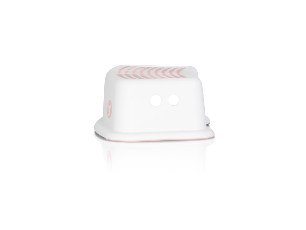Bezpečnost a stabilita: Schůdek je široký a stabilní, což zajišťuje, že se dítě může bezpečně pohybovat. Má široké gumové nožičky, které zabraňují jeho posouvání po podlaze i na kluzkých površích. Nožičky jsou esteticky sladěny s gumovými výstupky na vrchní ploše.