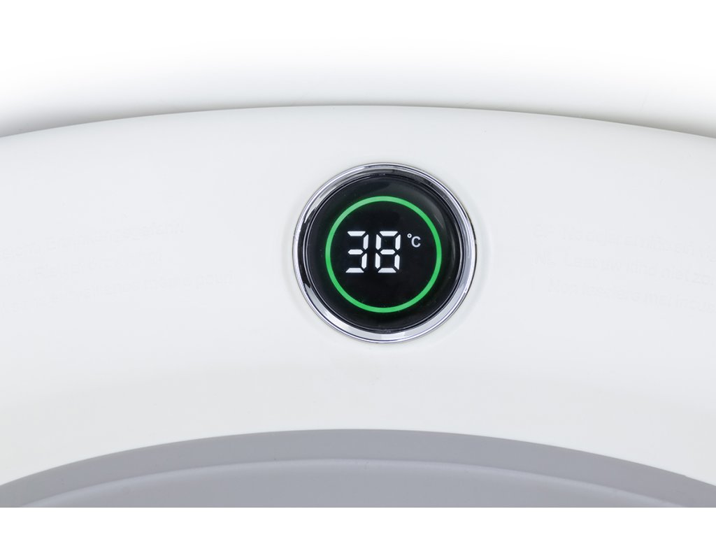 Integrovaný teploměr: Zabudovaný teploměr nabízí jednoduché měření teploty vody. Pokud teploměr svítí zeleně, voda je ideální ke koupání. Modrá barva znamená, že voda je příliš studená a červená signalizuje, že je příliš horká.