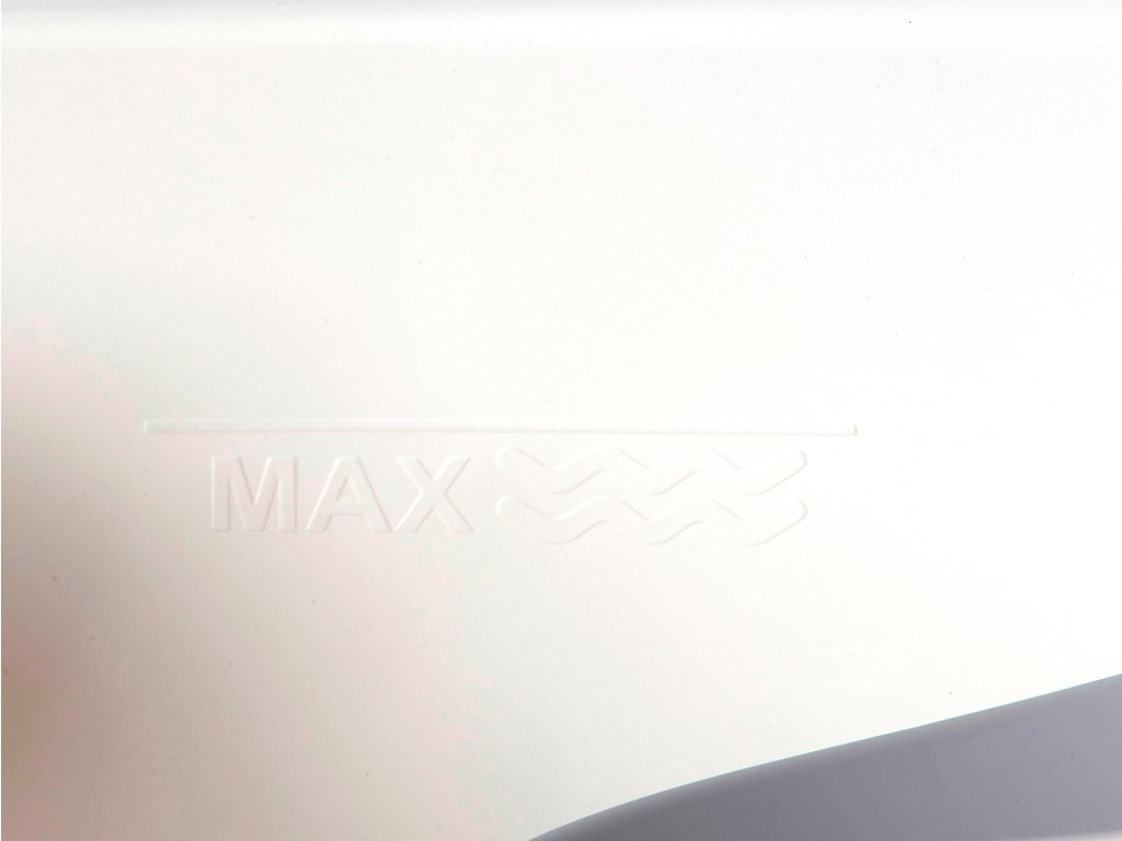 - Vyrobeno z pevného materiálu, který se neohýbá ani při plném naplnění. Vnitřní stěna obsahuje indikátor maximálního naplnění pro bezpečné použití.