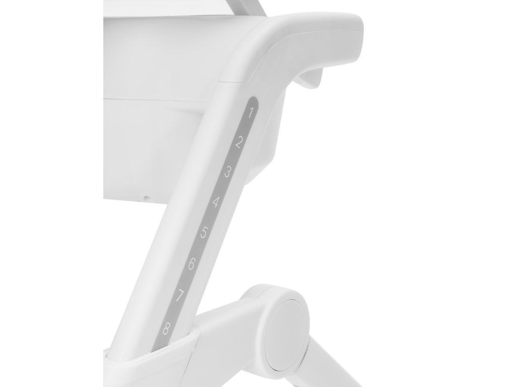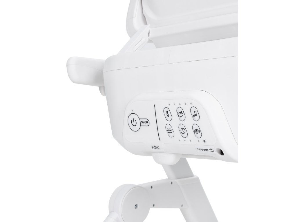 Univerzální lehátko, houpací křeslo a jídelní židlička s automatickou funkcí houpání pro miminka. Od narození do 12 měsíců věku lze Alto používat jako lehátko a houpací křeslo. Židlička pomáhá uklidnit dítě – pohybový senzor detekuje pohyb a automaticky aktivuje funkci houpání, když se dítě pohne. Maximální nosnost v režimu houpání – 9 kg. Zařízení lze ovládat pomocí dálkového ovladače nebo dotykového panelu: 5 úrovní rychlosti houpání časovač: 15 nebo 30 minut hudební modul (12 melodií) ovládání hlasitosti vodní zvuky zpěv ptáků pohybový senzor připojení Bluetooth Režim houpání lze zvolit pomocí páčky umístěné ve spodní části ovládacího panelu. V režimu houpání může Alto fungovat jak na síťové napájení, tak na AA baterie. Pětibodový bezpečnostní pás s anatomickou vložkou zajišťuje pohodlí a bezpečnost dítěte. Součástí balení je měkká vložka. Úhel hrazdy lze nastavit. Opěrku nohou a opěradlo židličky lze nastavit nezávisle – k dispozici jsou 4 polohy. Doporučený věk pro použití jako jídelní židlička: od 7 do 36 měsíců. Maximální nosnost – 15 kg. Chcete-li židličku Alto používat jako jídelní židličku, zajistěte sedák ve stabilní poloze pomocí zajišťovacích mechanismů. Tác lze bezpečně připevnit a vyjmout v jedné ze tří dostupných poloh. Součástí balení je odnímatelný tác. Osm úrovní nastavení výšky umožňuje, aby se židlička vešla na jakýkoli stůl. Dvě pogumovaná přední kolečka usnadňují přemisťování židličky. Alto lze snadno složit.Doplňkové parametry