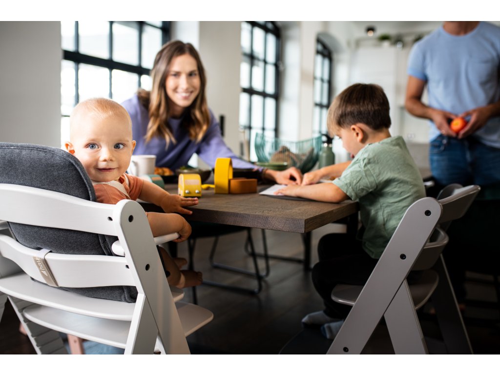 Roste s Vámi celý život // Židlička ALPHA+ je vhodná od cca. 6 měsíců a díky nastavitelnému sedadlu a opěrce nohou roste spolu s dítětem po celý život. Je robustní, její nosnost činí až 90 kg a konstrukčně poskytne maximální stabilitu. Převrhnutí se rozhodně bát nemusíte.