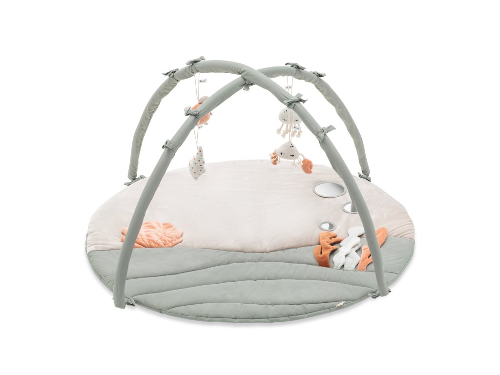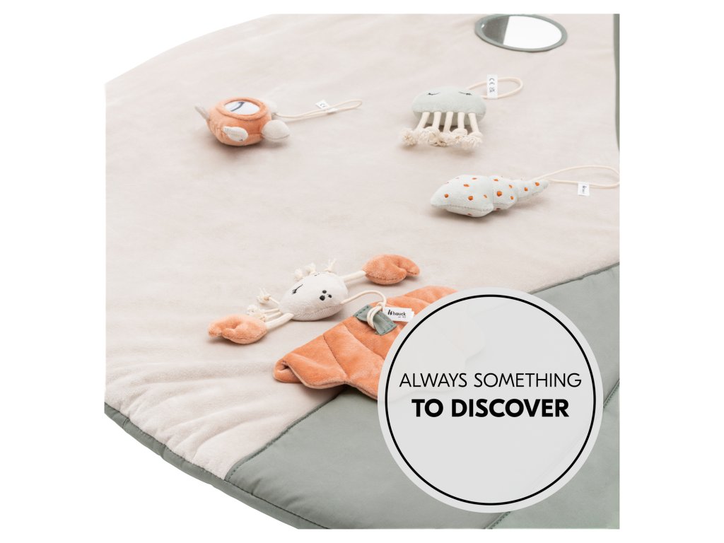 Pískající krab, chrastící medúza, vyšívaná mušle a želva se zrcátkem : každé zvířátko je možné sundat, vyměnit, takže se svět kolem vašeho miminka bude neustále měnit.