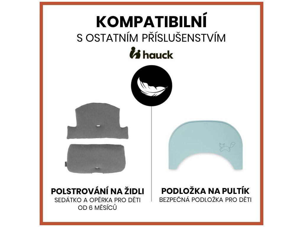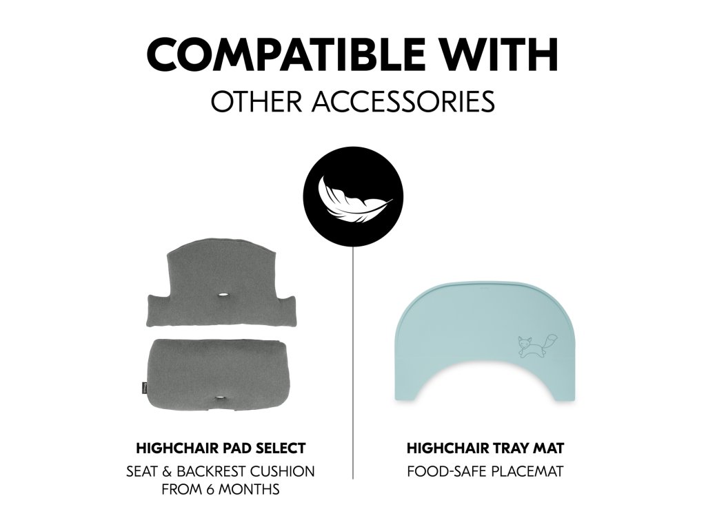 VĚTŠÍ POHODLÍ DÍKY POLSTROVÁNÍ // Pultík je kompatibilní s dalším příslušenstvím na židličky Alpha+, jako je například pohodlné polstrování na sedátko a opěrku židličky, které poskytuje vašemu děťátku větší pohodlí při sezení.