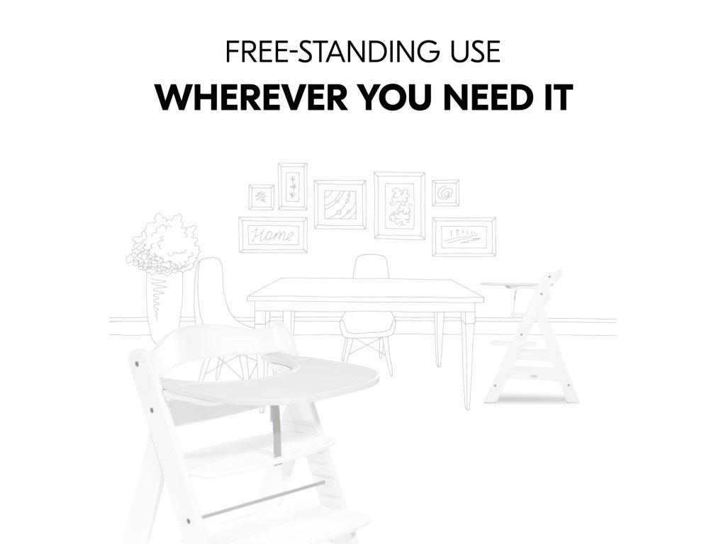 Na pultíku Alpha Click může vaše dítě jíst a hrát si, kdekoli si přejete, ať už v kuchyni, obývacím pokoji nebo na balkoně. Lehký a odolný tác se na dřevěnou židličku nasazuje jednou rukou, což je ideální, když je druhá ruka již zaneprázdněná.