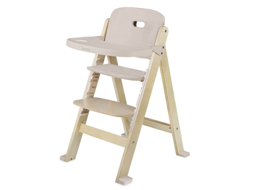 Opěradlo vysoké židle je vybaveno speciální rukojetí pro snadnou přepravu. Podnos lze zavěsit vzadu, aby se předešlo nepořádku. Tlumené barvy a univerzální design dělají Lionelo Floris dobře v každém interiéru.
