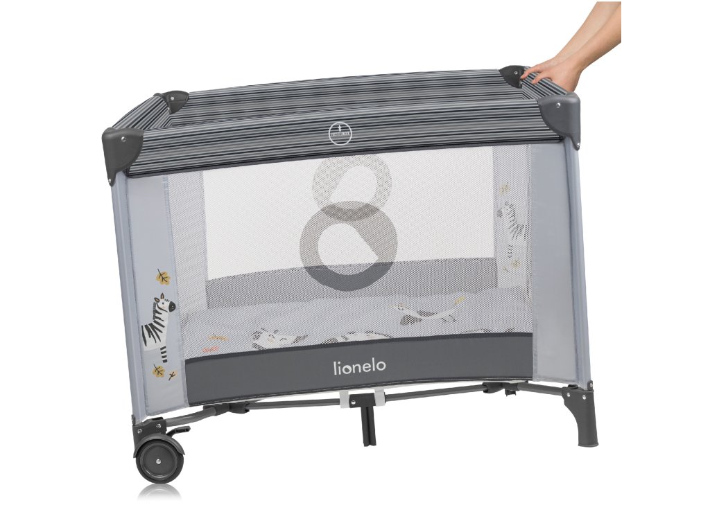 Lionelo Bonnie je funkční dětská ohrádka, která zaručuje bezpečný a hygienický prostor pro hraní a zároveň poskytuje rodičům chvíli odpočinku. Speciální boční strany z prodyšné síťoviny umožňují volnou cirkulaci vzduchu a udržování očního kontaktu s dítětem. Boční vchod se zipem dává starším dětem možnost samostatného vstupu a výstupu z ohrádky, čímž odlehčuje záda rodiče, která nemusí pokaždé dítě zvedat a vybírat. Zip se nachází na vnější straně, takže rodič má plnou kontrolu nad otevíráním ohrádky. Pěnová matrace s optimální tvrdostí zajišťuje pohodlné podmínky pro odpočinek. Ohrádku lze snadno a rychle složit do kompaktních rozměrů a přepravovat pomocí tašky, která je součástí balení. Stabilní ocelová konstrukce zaručuje maximální bezpečí – všechny tvrdé prvky se nacházejí na vnější straně.