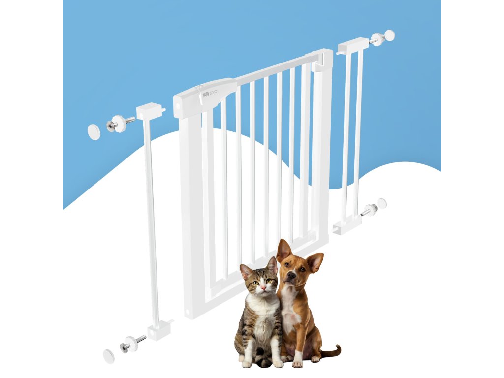 Sada skládající se z branky a kovového nástavce o šířce 7 nebo 14 cm je vhodná pro schody nebo dveře o šířce 75-103 cm. Díky nastavovacím šroubům ji můžete rychle a stabilně upevnit na místě.