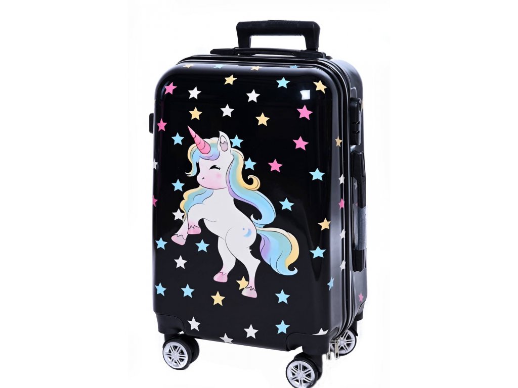 Dívčí cestovní kufr s motivem jednorožce a hvězdami je nejen praktický, ale také stylový a moderní, což z něj činí dokonalého společníka pro každé malé dobrodružství.