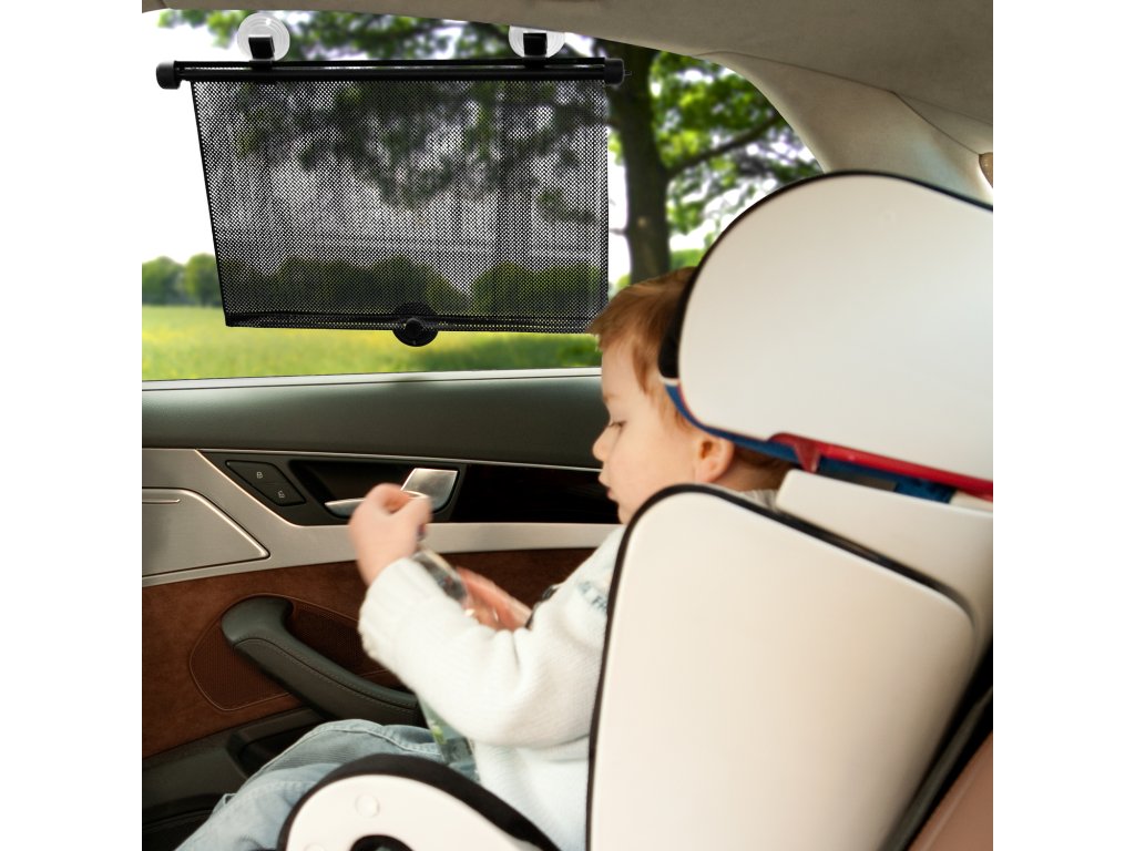 Tyto kvalitní sluneční rolety efektivně chrání proti přímým slunečním paprskům a také proti rychlému a nebezpečnému přehřátí uvnitř automobilu. Lehký a odolný, síťový materiál má šířku 37 cm a lze jej libovolně nastavit do délky. Roleta nenarušuje pohled ven z vozidla. Shade Me se vyroluje stiskem tlačítka na straně kolejničky. Připevnit lze roletu buď pomocí dvou věšáčků s háčkem přímo na okno vozidla, nebo pomocí extra silné přísavky na okenní tabuli. 2 ks v balení.