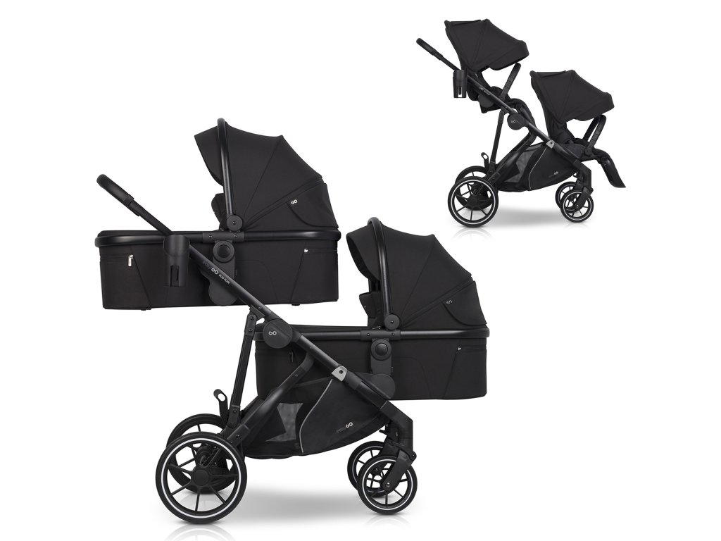 Sourozenecký kočárek EasyGo Duoflex Ebony Black, 2 sportovní části, 2 hluboké vaničky
