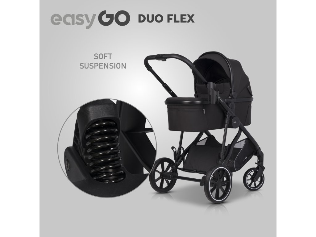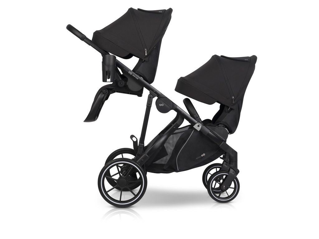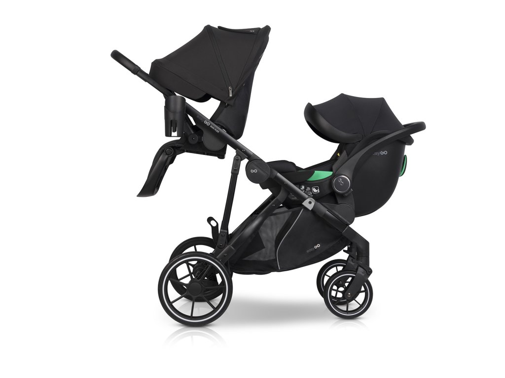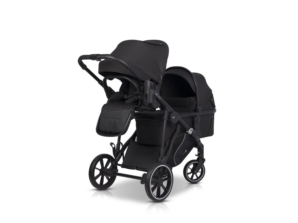 Sourozenecký kočárek EasyGo Duoflex Ebony Black, 1 sportovní část, 1 hluboká vanička