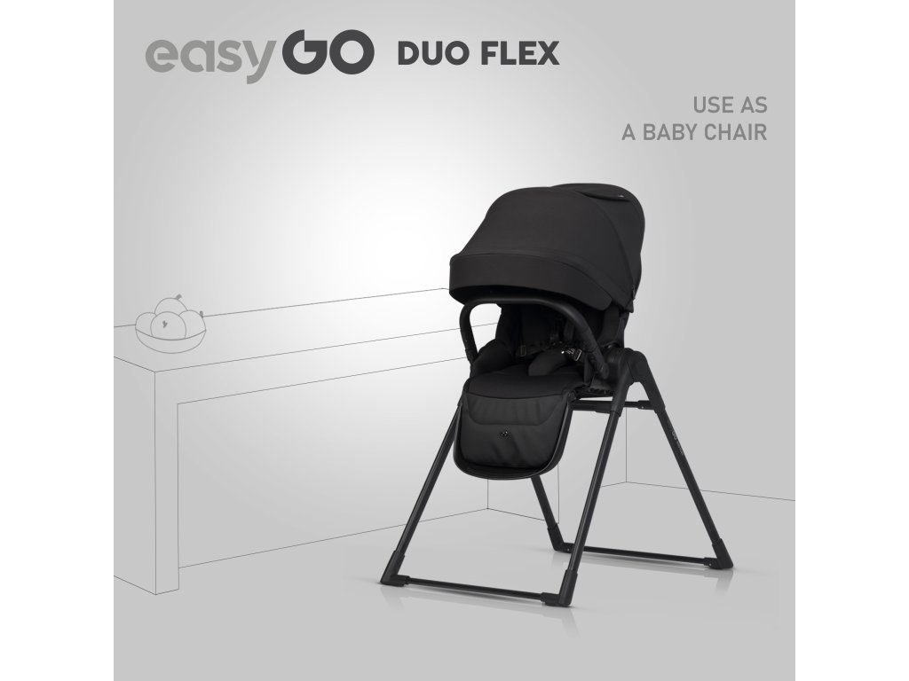 Praktickým doplňkem systému Duoflex je možnost dokoupení samostatného stojanu pro hlubokou vaničku i sportovní sedátko. Po umístění vaničky na stojan může sloužit jako dočasná dětská postýlka - což je mimořádně užitečné při cestování, návštěvách nebo v malých prostorách, kde nechcete nebo nemůžete mít klasickou postýlku. Sklopíte-li budku a otevřete všechny ventilační panely, získáte výborný přístup k dítěti a díky síťovinovým panelům i dobrou viditelnost z obou stran. Při použití sportovního sedadla na stojanu vzniká praktické vysoké židle sezení na krmení – dítě je zajištěno pětibodovými pásy a bezpečnostní hrazdičkou, zatímco široká a stabilní základna stojanu zajišťuje potřebnou stabilitu.