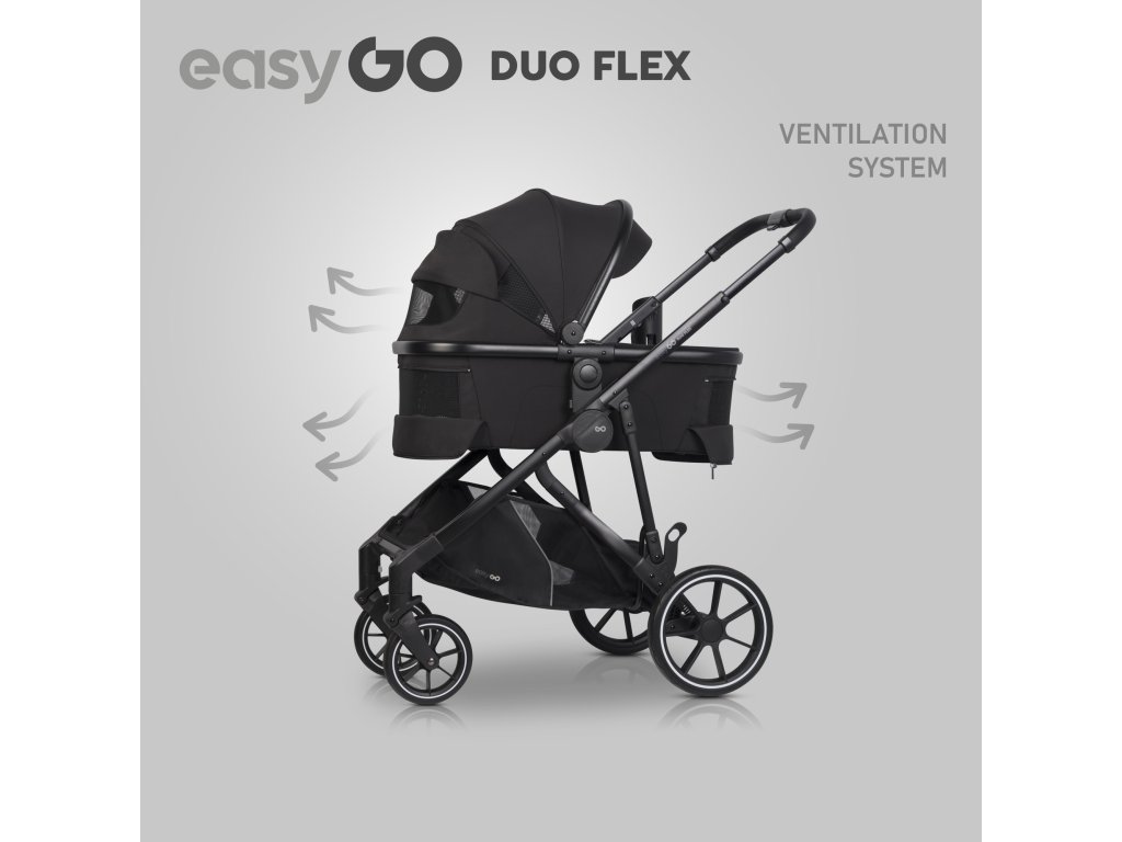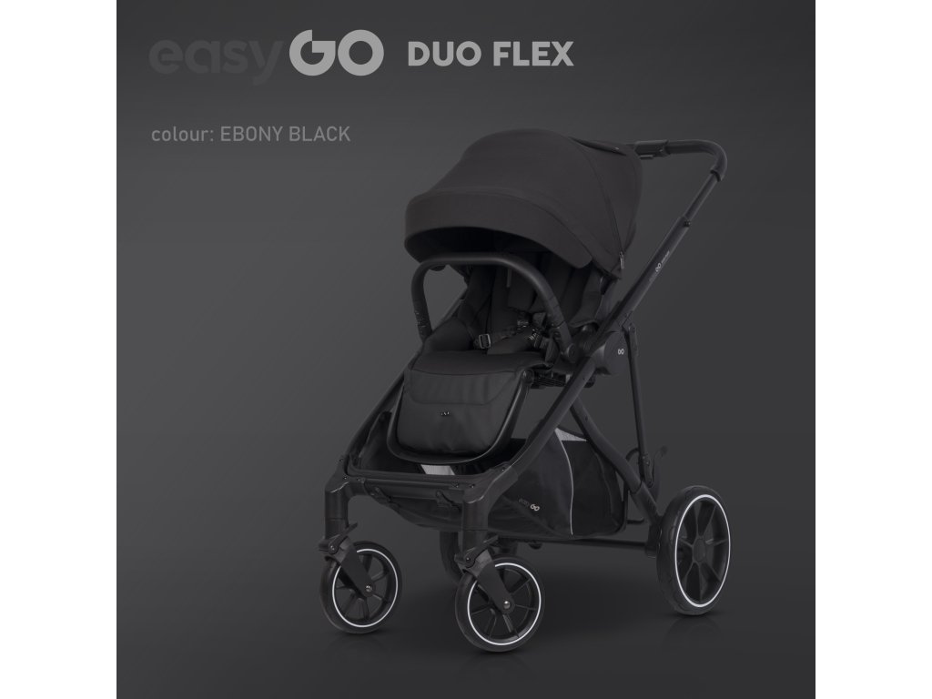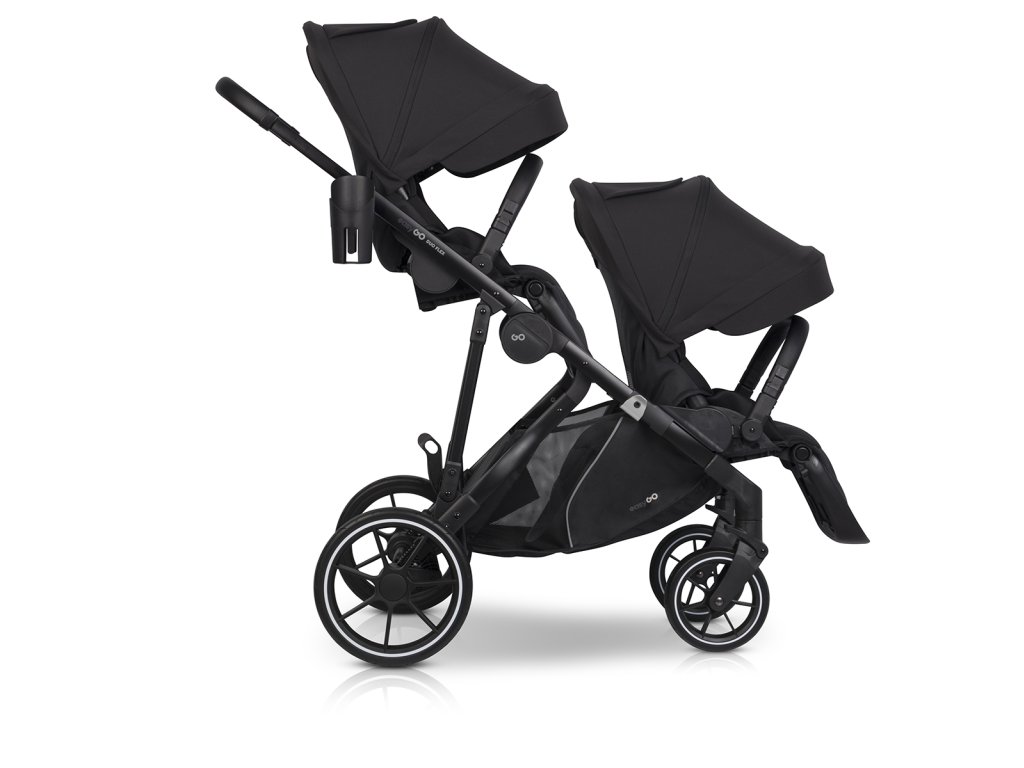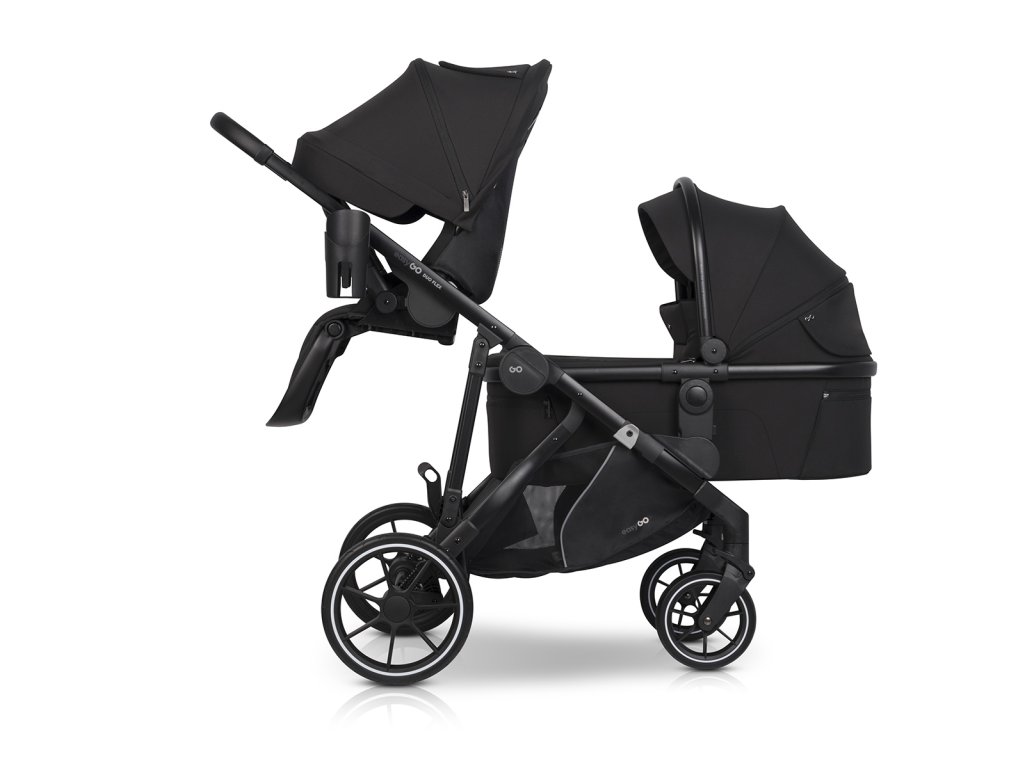 Sourozenecký kočárek EasyGo Duoflex Ebony Black, 2 sportovní části, 2 hluboké vaničky