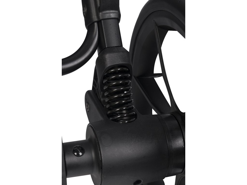 - Snadná manipulace: Přední kola jsou otočná s možností blokace pro přímou jízdu. Teleskopická rukojeť se přizpůsobí výšce rodiče a brzda je snadno ovladatelná i v sandálech.