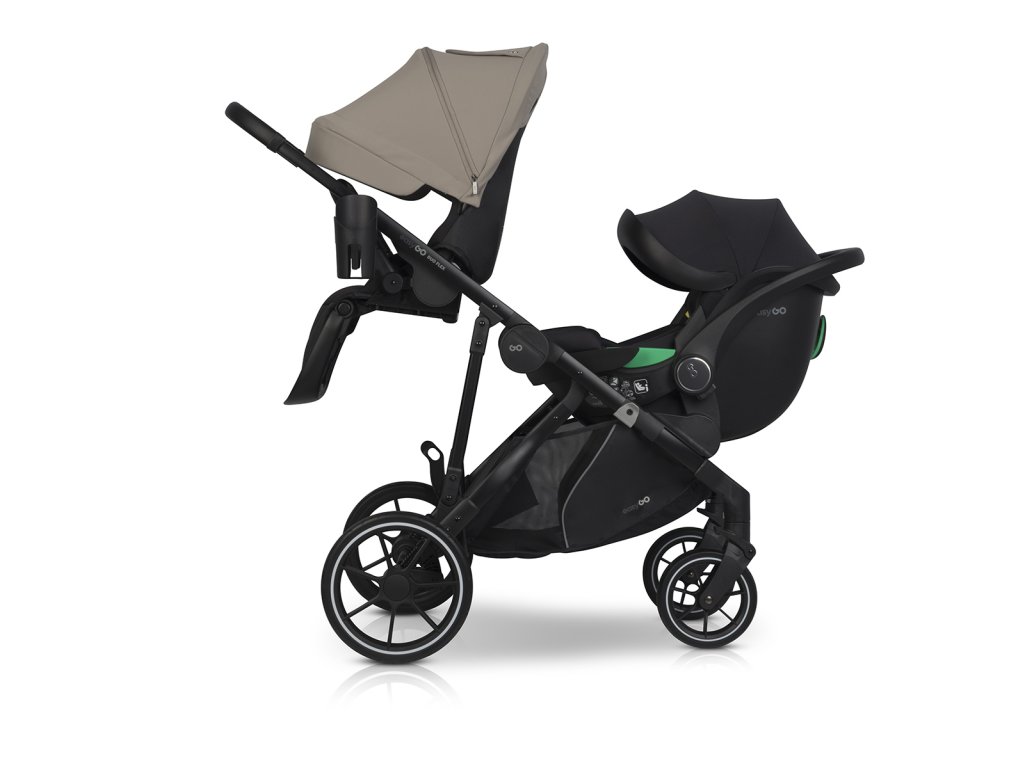 Sourozenecký kočárek EasyGo Duoflex Savana Beige, 2 sportovní části, 1 hluboká vanička