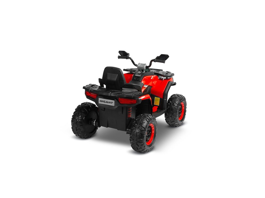 GIGANT je vybaven čtyřmi výkonnými motory o výkonu 45 W , což dohromady činí impozantních 180 W celkového výkonu . Díky této mimořádné síle si čtyřkolka hravě poradí s nerovným povrchem, mírným stoupáním i náročnějšími terénními podmínkami. Vaše dítě tak může objevovat zahradu, park nebo lesní cesty s jistotou, že GIGANT jej nikdy nezklame.
