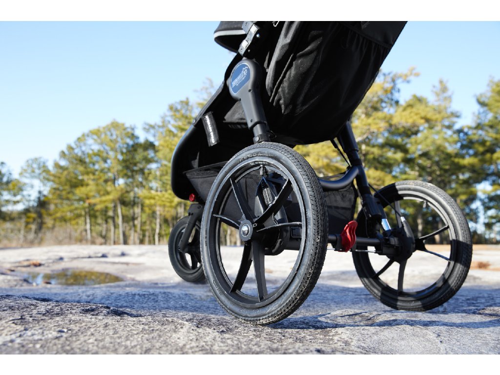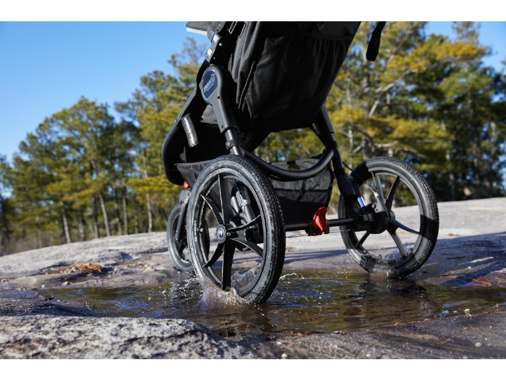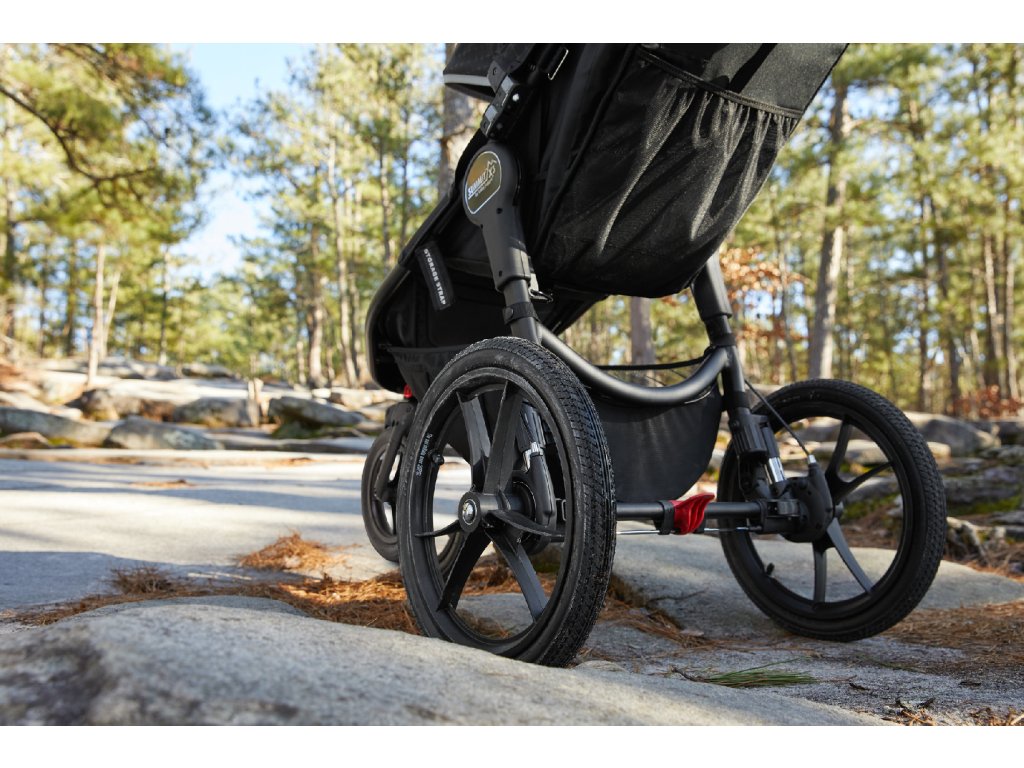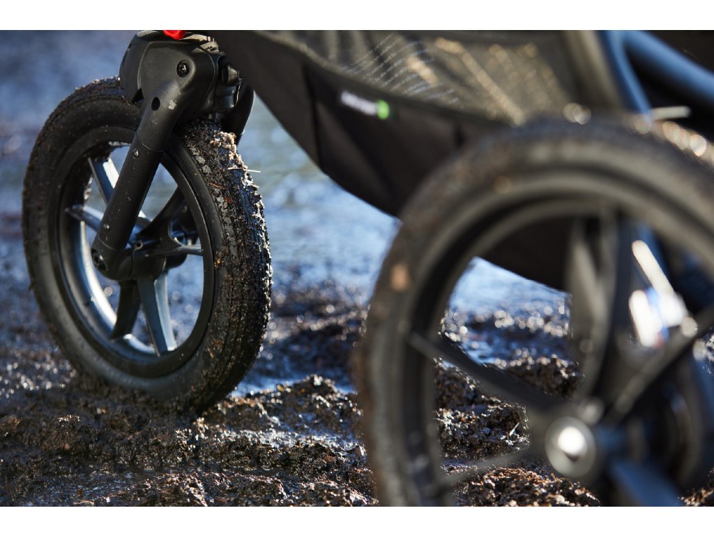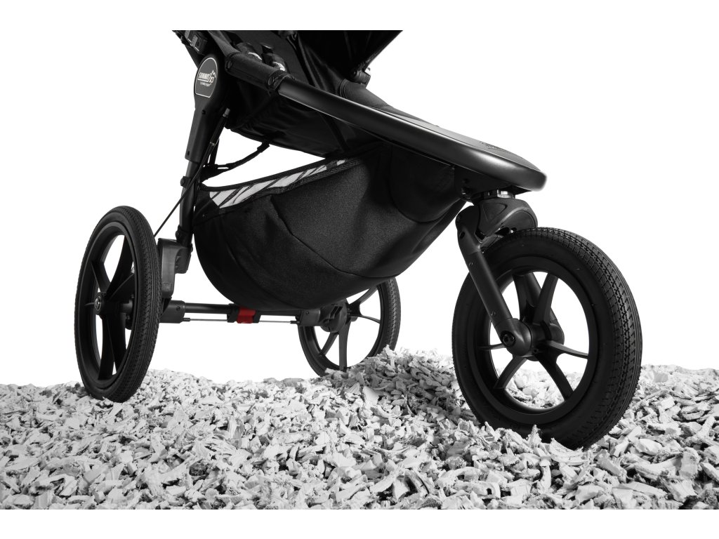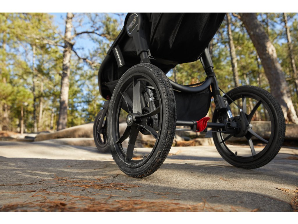 ODPRUŽENÍ VŠECH KOL // Summit ™ X3 má 12 "a 16" vzduchem naplněná gumová kola s odpružením 3x3, díky nimž je jízda po jakémkoli terénu tou nejhladší jízdou, ať už v režimu joggingu nebo při běžné jízdě s kočárkem.