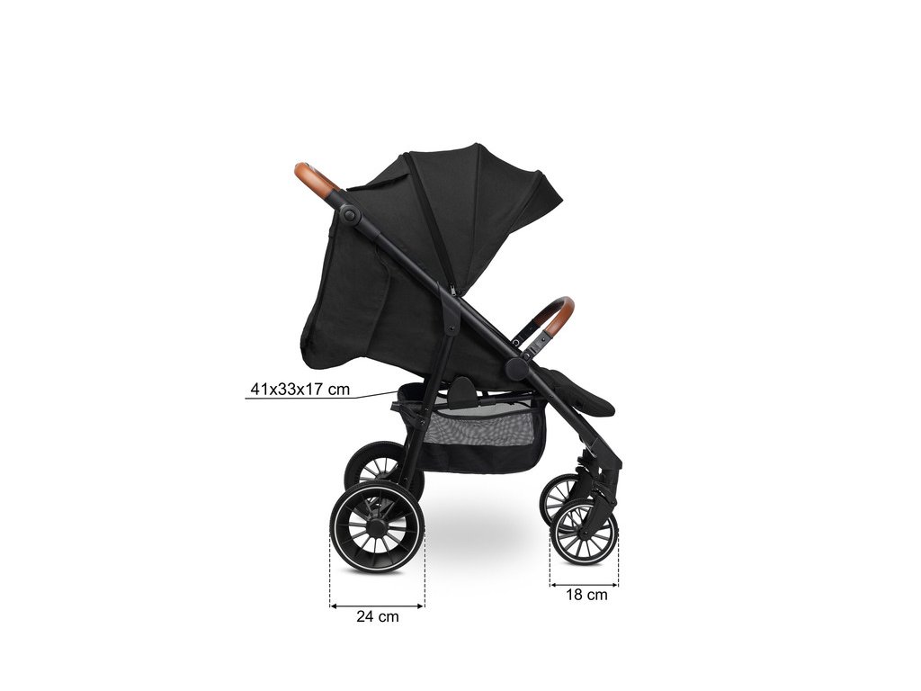 Elma je kočárek, který usnadňuje život! Prostorný koš pod sedadlem pojme potřebné příslušenství a další kapsa na opěrce zad se hodí na všelijaké drobnosti. Stylová hrazda a rukojeť z umělé kůže nejen zdůrazňují elegantní design, ale také poskytují pohodlný úchop.