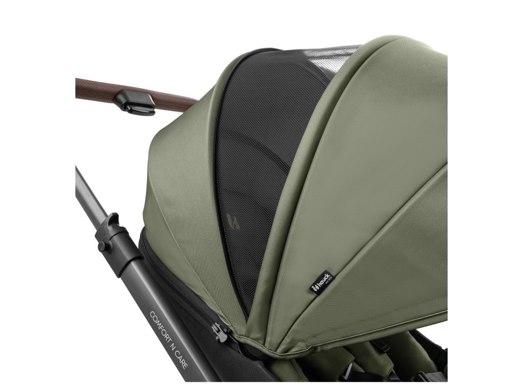 XL STŘÍŠKA PRO MAXIMÁLNÍ OCHRANU PŘED SLUNCEM // Sedátko i korbička mají prodloužitelnou sluneční stříšku s ochranou proti UV záření 50+ a velká síťovaná okénka. Díky tomu je vaše děťátko optimálně chráněno a přitom si může užívat čerstvý vzduch.