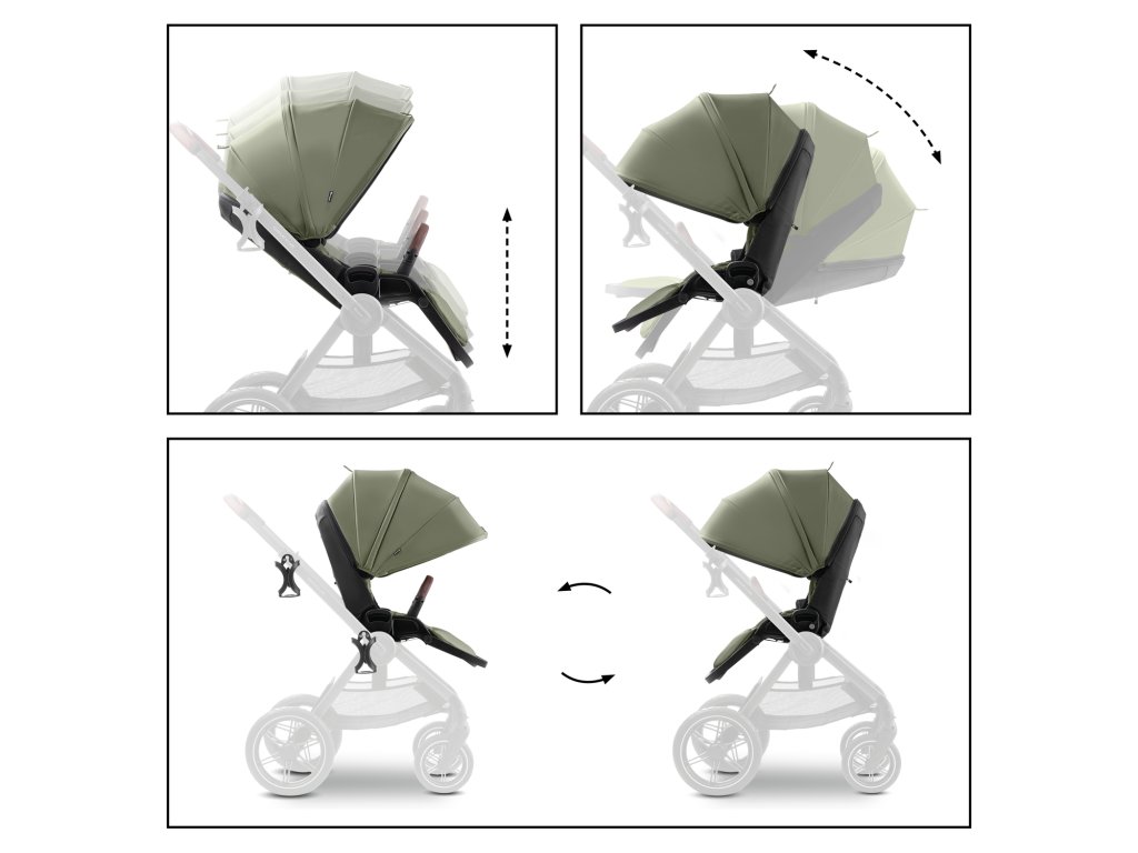 POHODLNÉ SEDÁTKO SE DVĚMA SMĚRY POHLEDU // Na zmrzlinu, na kávu či do parku: všude se vám kočárek dokonale přizpůsobí díky výškově nastavitelnému otočnému sedátku, navíc s extra dlouhým sezením a polohováním poskytuje maximální pohodlí v každé situaci.