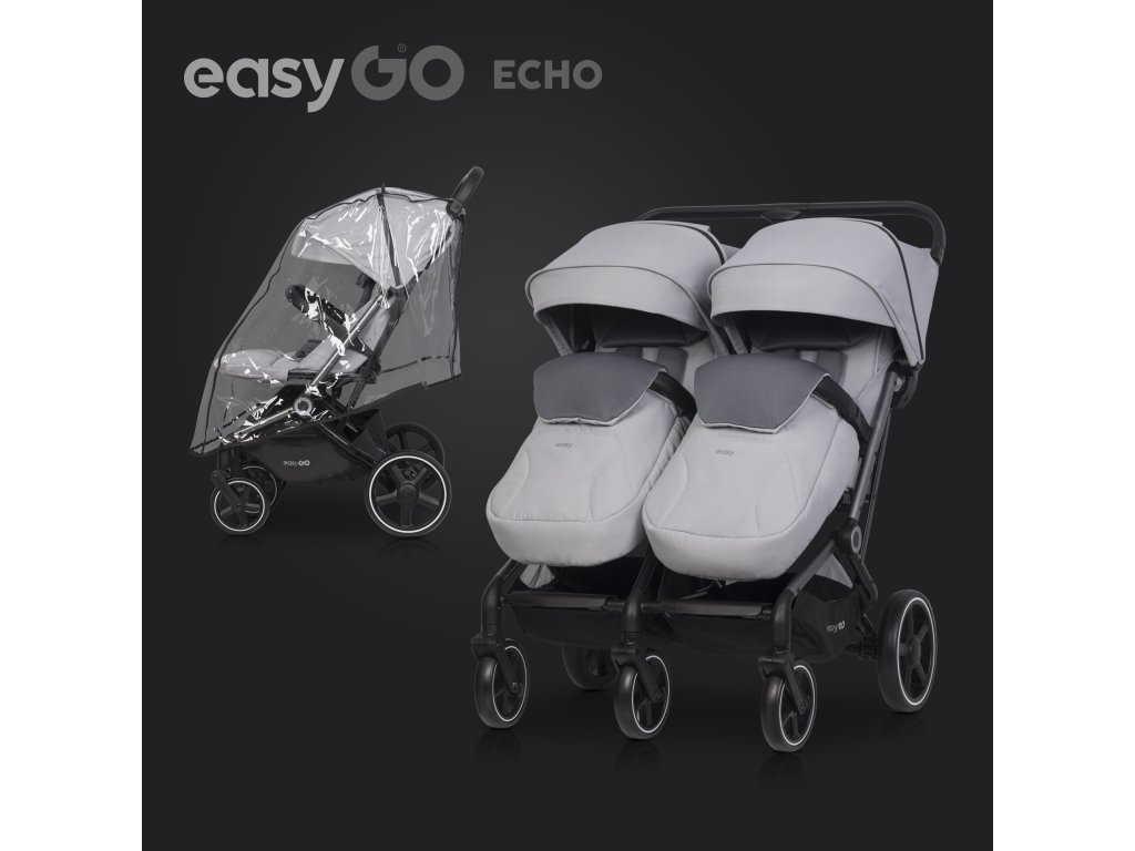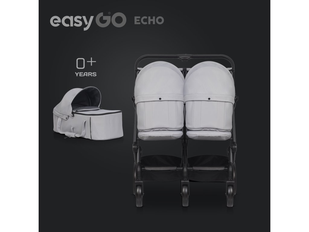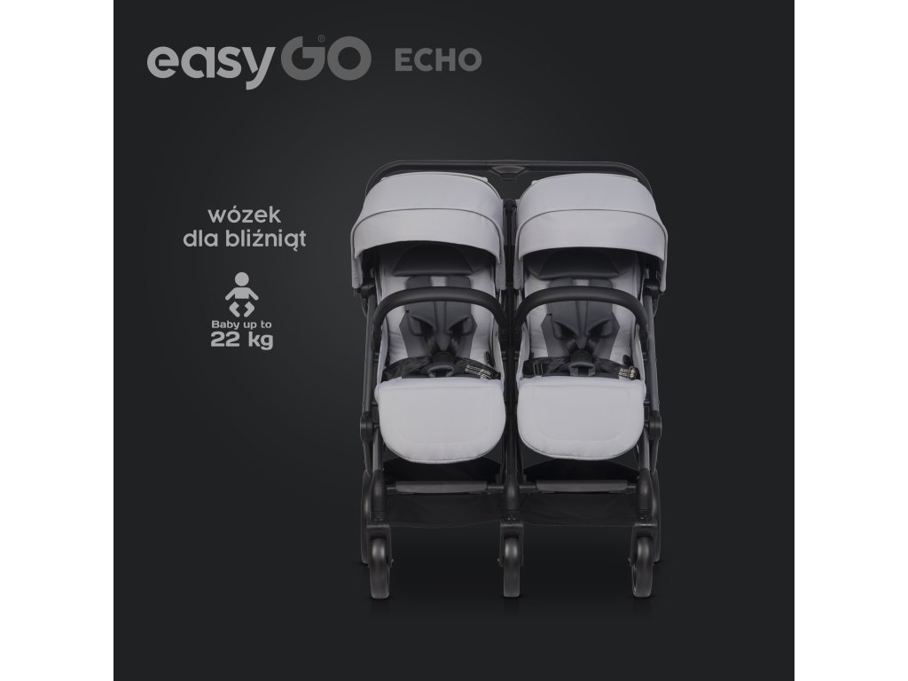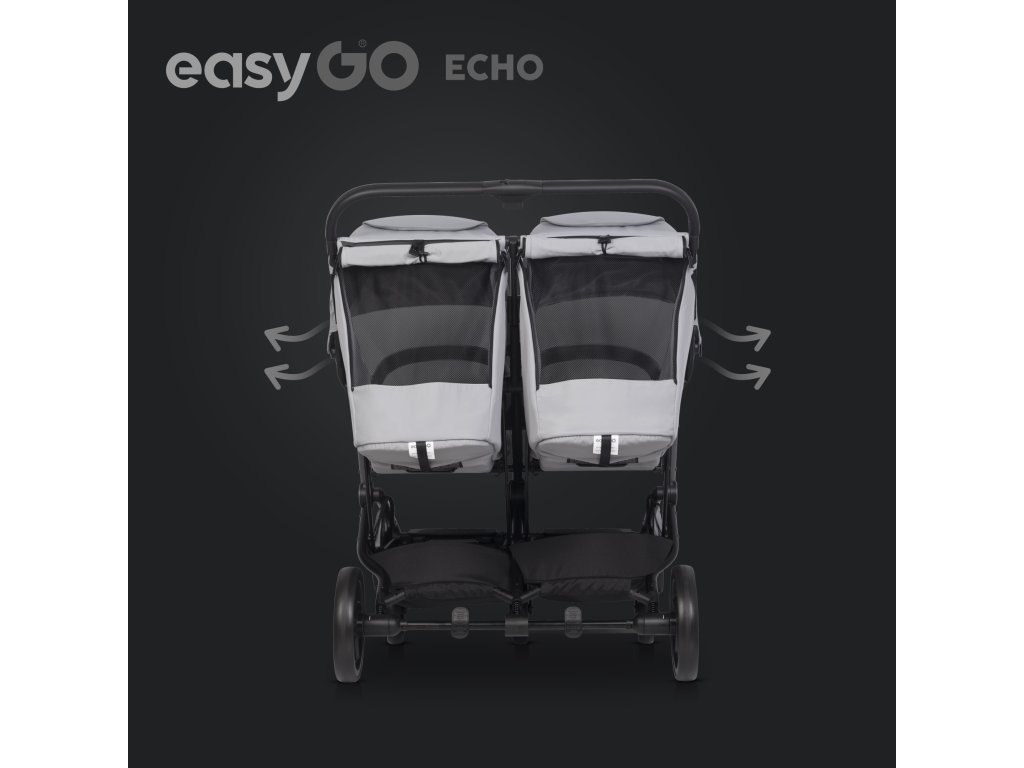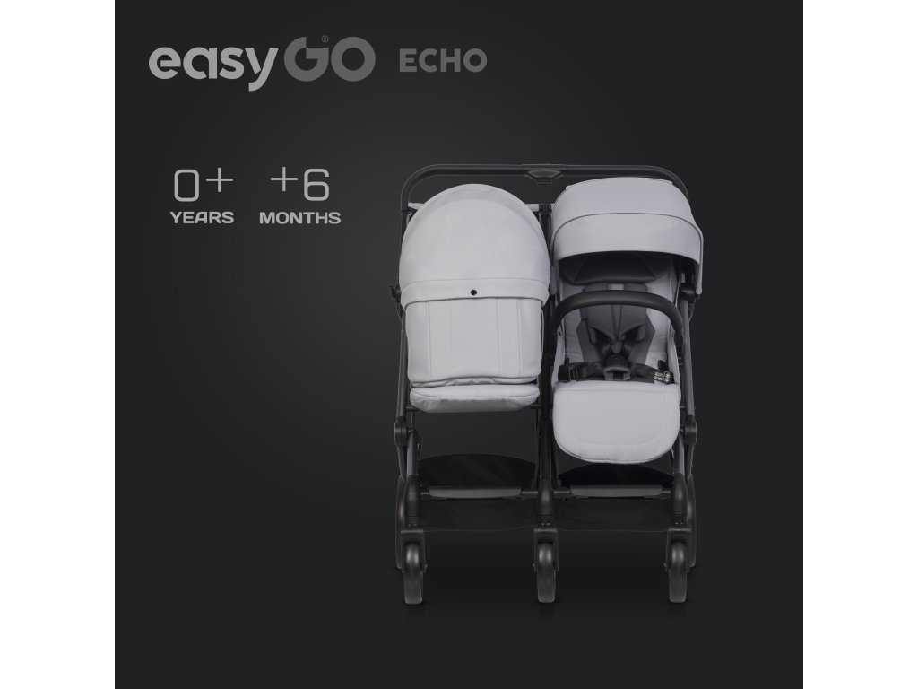 Ultra lehký a obratný kočárek pro dvě děti – ideální pro dvojčata nebo sourozence narozené rok po roce. EasyGo Echo je výsledkem více než 15 let zkušeností značky EasyGo, která je lídrem ve výrobě kočárků pro dvojčata a sourozence. Tento kočárek kombinuje komfort dětí s pohodlím rodičů, díky čemuž je ideálním společníkem pro každodenní procházky.