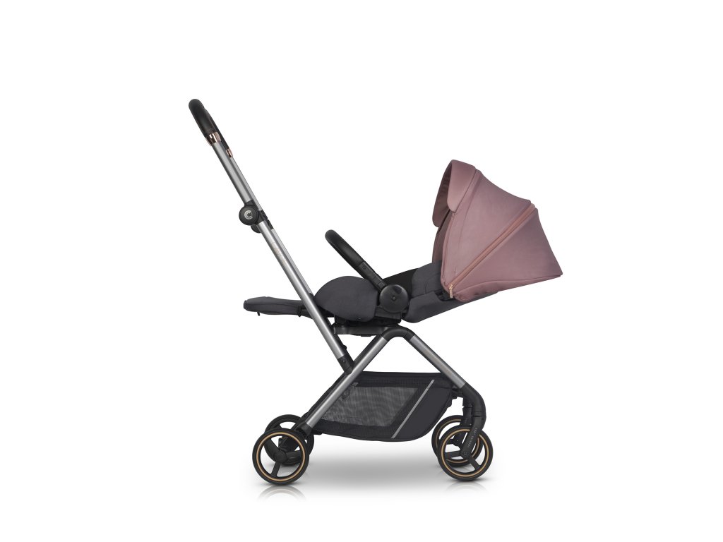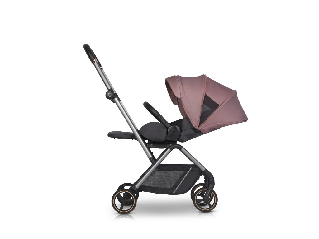 - Inovativní obousměrné sedátko: Díky unikátnímu otočnému mechanismu dokážete změnit směr jízdy is dítětem v kočárku, bez potřeby vyjímání a opětovného nasazování sedadla.