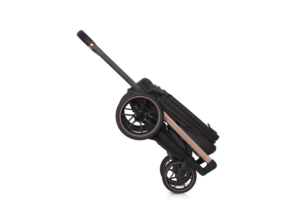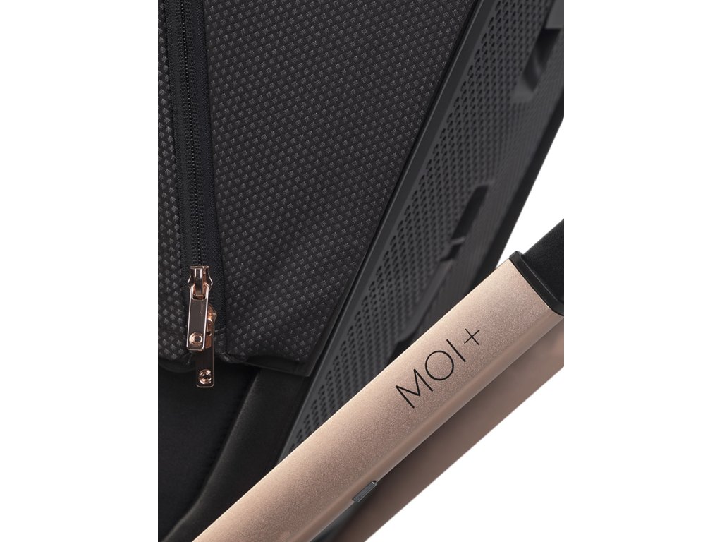 Po složení kočárek samostatně stojí na kolech. Tím se eliminuje riziko náhodného znečištění potahů nebo poškrábání konstrukce o zem. Složený Moi+ můžete také postavit vertikálně a táhnout za sebou jako kufr na kolečkách, což je ideální při cestování nebo pohybu na letištích a nádražích. Nízká hmotnost a kompaktní rozměry (pouze 40 x 52 x 69 cm se sedadlem) usnadňují jeho přenášení a skladování i v malém bytě či kufru auta.