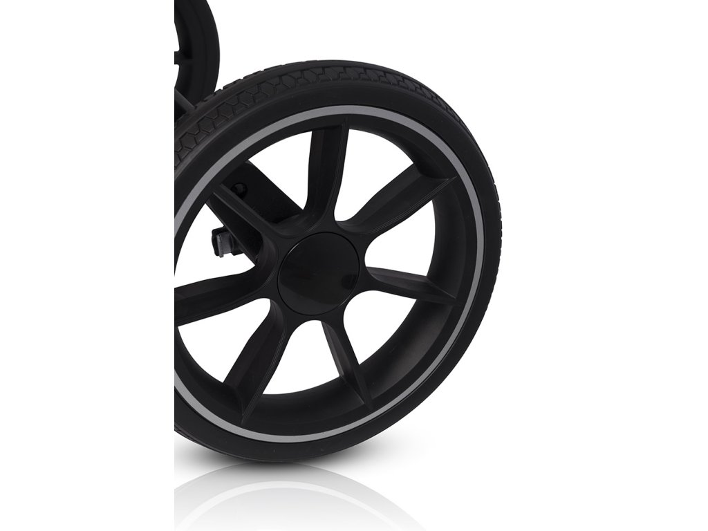 Kompaktní rozměry neznamenají kompromis v kvalitě jízdy. Právě naopak. Moi+ je vybaven vynikajícím odpružením a velkými, bezúdržbovými gumovými koly. Tato kola jsou bezdušová, takže se nemusíte obávat defektu. Jejich celoroční dezén zajišťuje skvělou přilnavost a trakci na jakémkoli povrchu, od městských stezek přes kočičí hlavy až po zasněžené cesty.