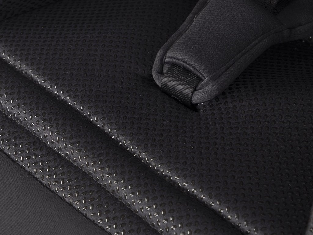 - Protiskluzová tkanina: Absolutní novinka v dětských kočárcích! Sedací část je potažena speciální látkou se silikonovými bublinkami. Tato technologie, dlouho využívaná v dětských nosičích, zabraňuje sklouzávání dítěte v sedadle. Zajišťuje tak, že dítě sedí vždy v optimální, ergonomické poloze, což omezuje riziko vzniku chyb držení těla v budoucnosti.