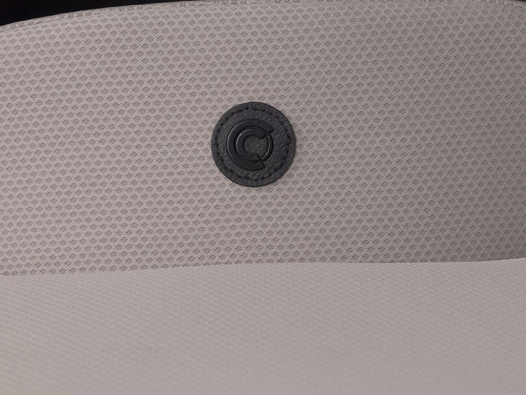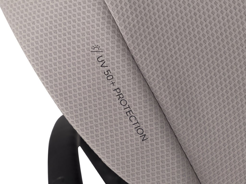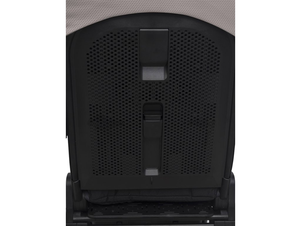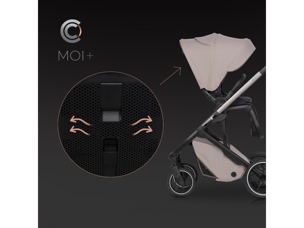 - Ventilace zádové opěrky: Kromě klasické ventilace ve stříšce má sedák Moi+ unikátní systém větrání přímo ve skořepině zádové opěrky, což zaručuje tepelný komfort i během nejteplejších dnů.
