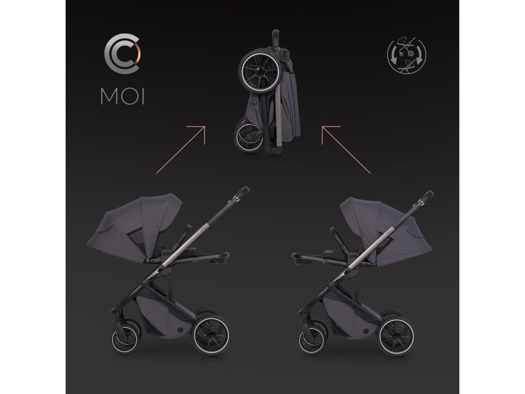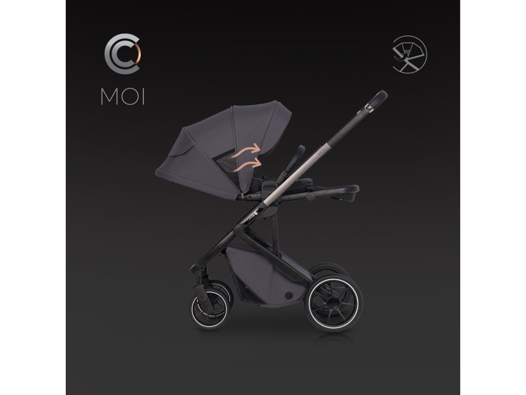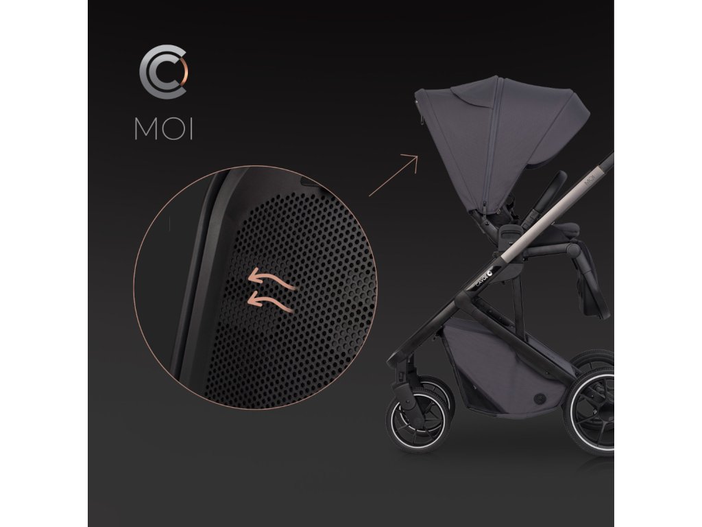 Cavoe Moi Iron MOI je moderní sportovní kočárek, který spojuje jedinečný styl s všestrannou funkčností. Tento inovativní kočárek se vyznačuje teleskopickým systémem skládání, díky kterému lze složit do kompaktních rozměrů, ať už je sedadlo namontováno ve směru nebo proti směru jízdy. Po složení kočárek zůstává stát na kolech, což eliminuje riziko znečištění potahu nebo poškrábání konstrukce. Díky možnosti postavení ve svislé poloze jej lze snadno táhnout jako kufr.