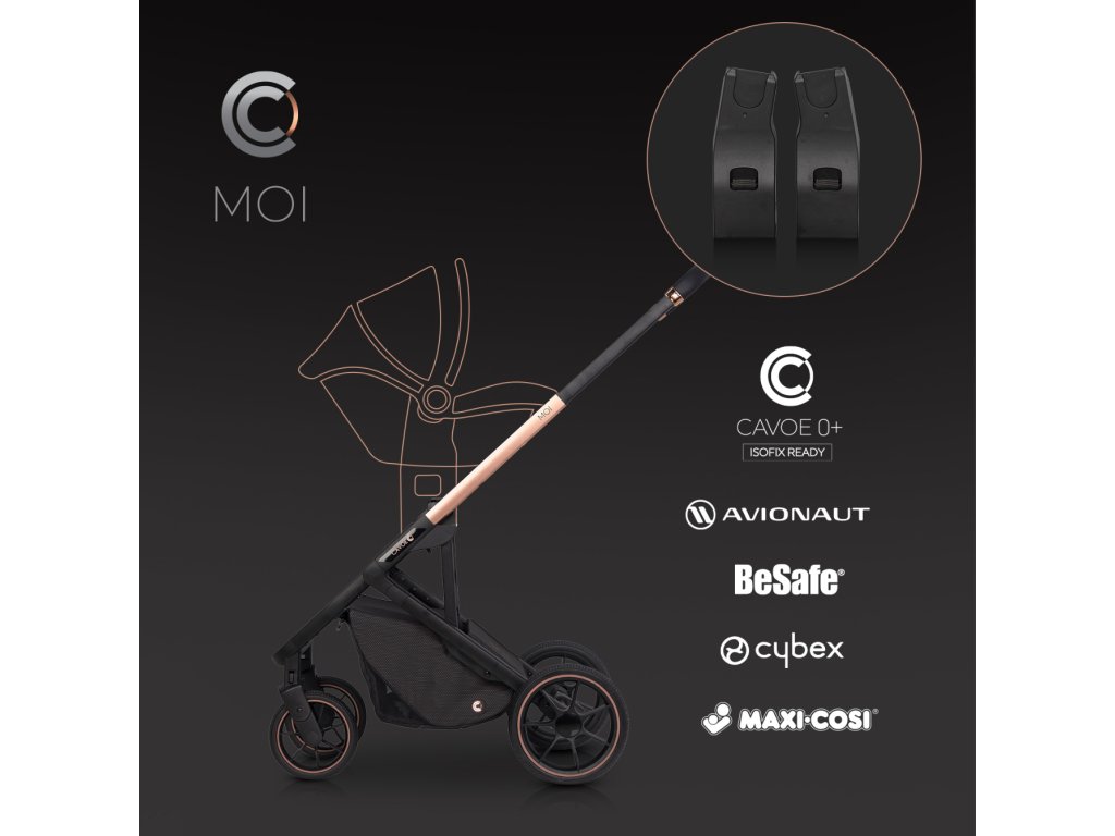 Styl a design: Inspirace nejnovějšími pařížskými módními trendy činí z kočárku Cavoe Moi stylový doplněk pro každodenní použití. Cavoe Moi spojuje vysokou kvalitu zpracování s moderním designem, což zajišťuje pohodlí a bezpečnost jak pro rodiče, tak pro dítě.