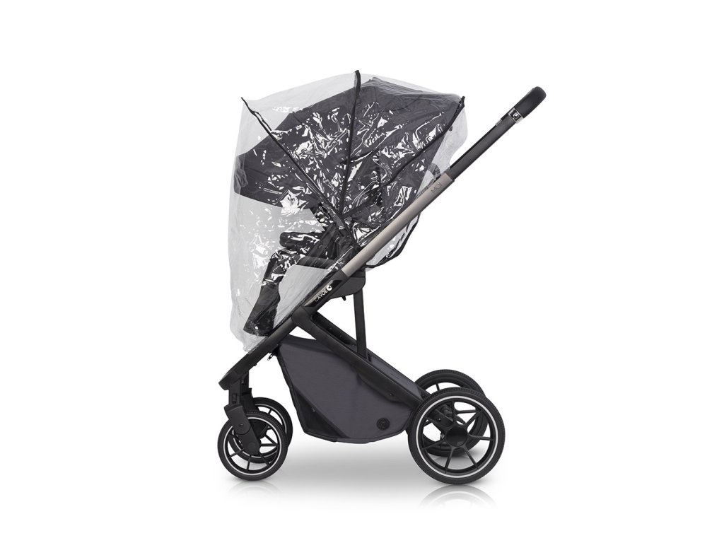 - Praktické doplňky: V sadě je pláštěnka, moskytiéra a zimní zateplení. K dispozici je také velký nákupní košík a možnost dokoupení elegantní tašky, která se po rozložení přemění na přebalovací podložku.