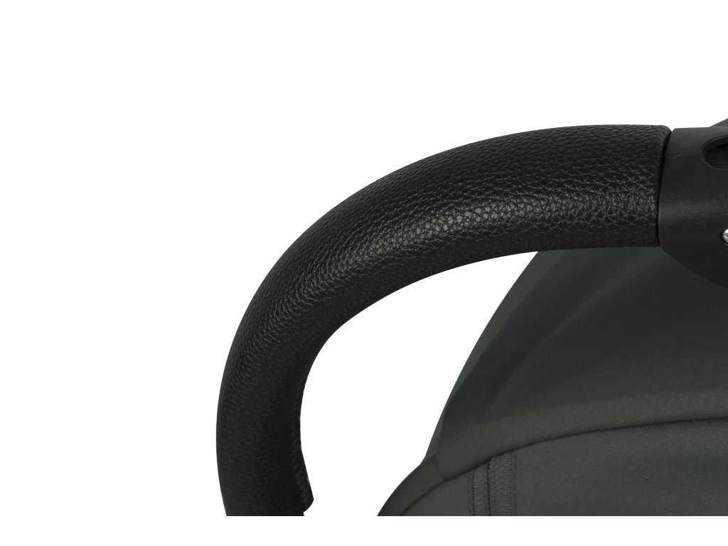 - Elegantní detaily: Rukojeť a ochranná bariéra jsou potaženy kvalitní ekologickou kůží, která je snadno udržovatelná. Použité tkaniny typu Oxford v moderních barvách jsou zdobeny kovovými emblémy.