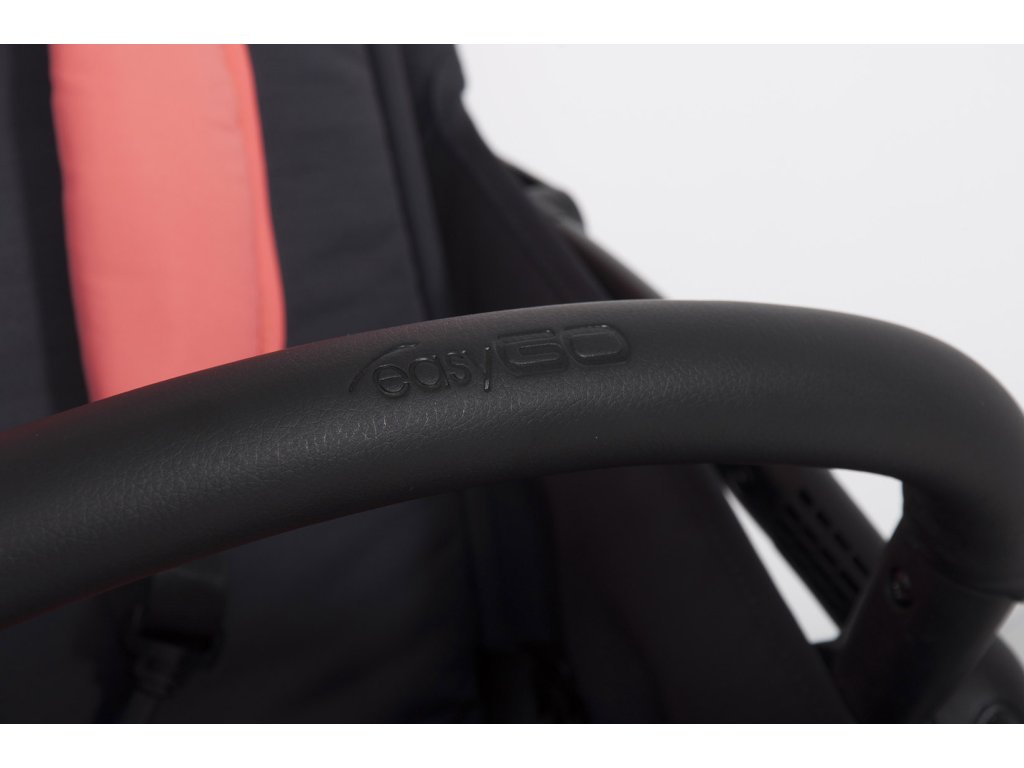 EasyGo Minima je nejen praktický, ale také elegantní. Rukojeť a bezpečnostní madlo jsou potaženy luxusní ekologickou kůží, která dodává kočárku prémiový vzhled a je příjemná na dotek. Bezpečnost zajišťují 5bodové bezpečnostní pásy a centrální brzda, která jedním sešlápnutím spolehlivě zablokuje obě zadní kola.