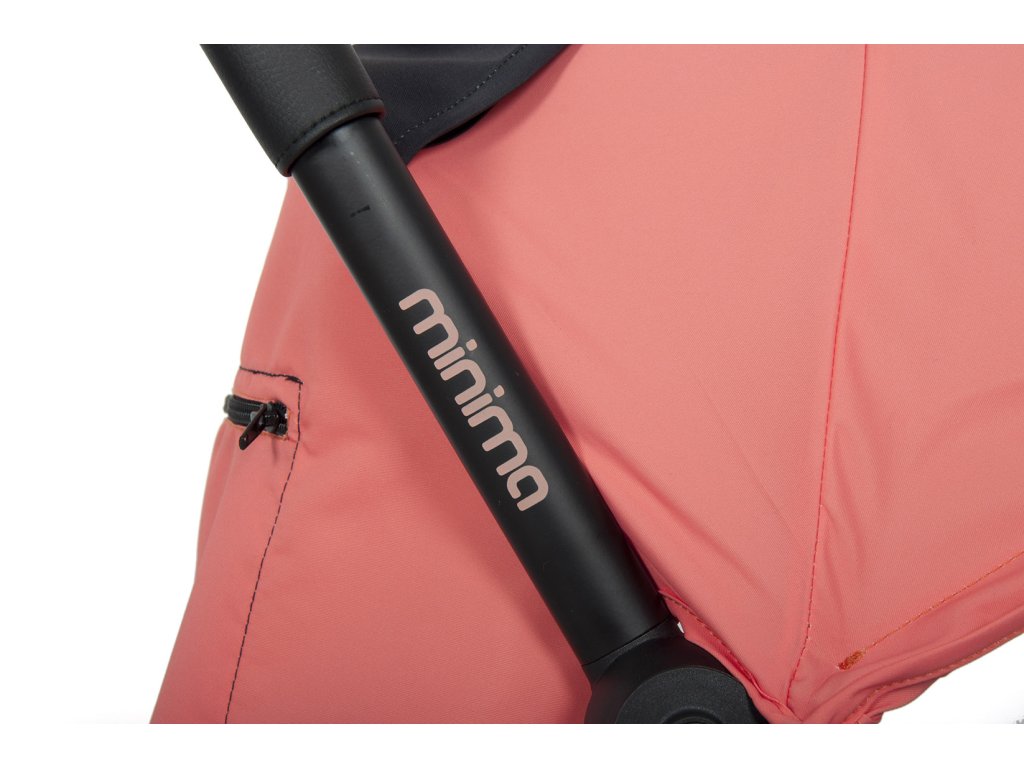 Srdcem kočárku Minima je jeho neuvěřitelná lehkost a skladnost. Díky rámu ze speciální hliníkové slitiny váží pouze 6 kg, což z něj činí jeden z nejlehčích kočárků na trhu. Složení a rozložení je otázkou vteřiny a zvládnete jej jedním rychlým pohybem. Ve složeném stavu je tak kompaktní (pouze 24 x 46 x 61 cm), že jej bez problémů uložíte do kufru i toho nejmenšího auta, za sedadlo ve vlaku nebo jej jednoduše přehodíte přes rameno díky praktickému popruhu. Schody, veřejná doprava ani úzké uličky kaváren už nebudou překážkou. Kola z odolného polyuretanu jsou tichá, odolná vůči opotřebení a zajišťují hladkou jízdu po chodnících a městských cestách.