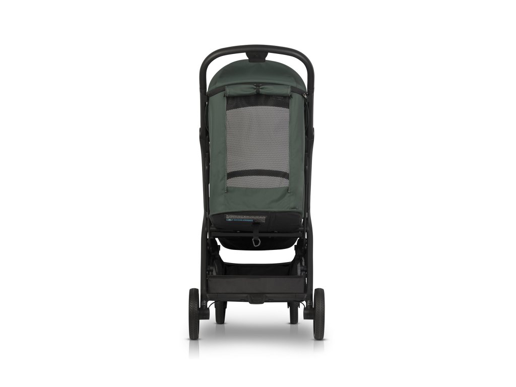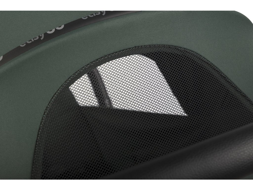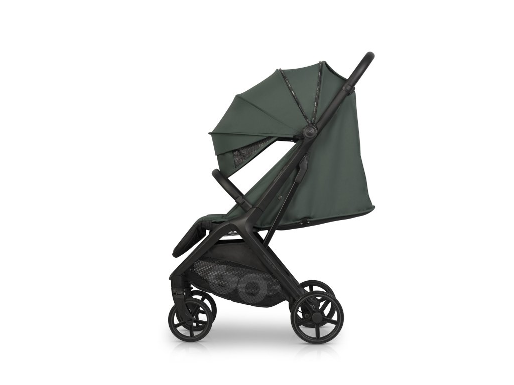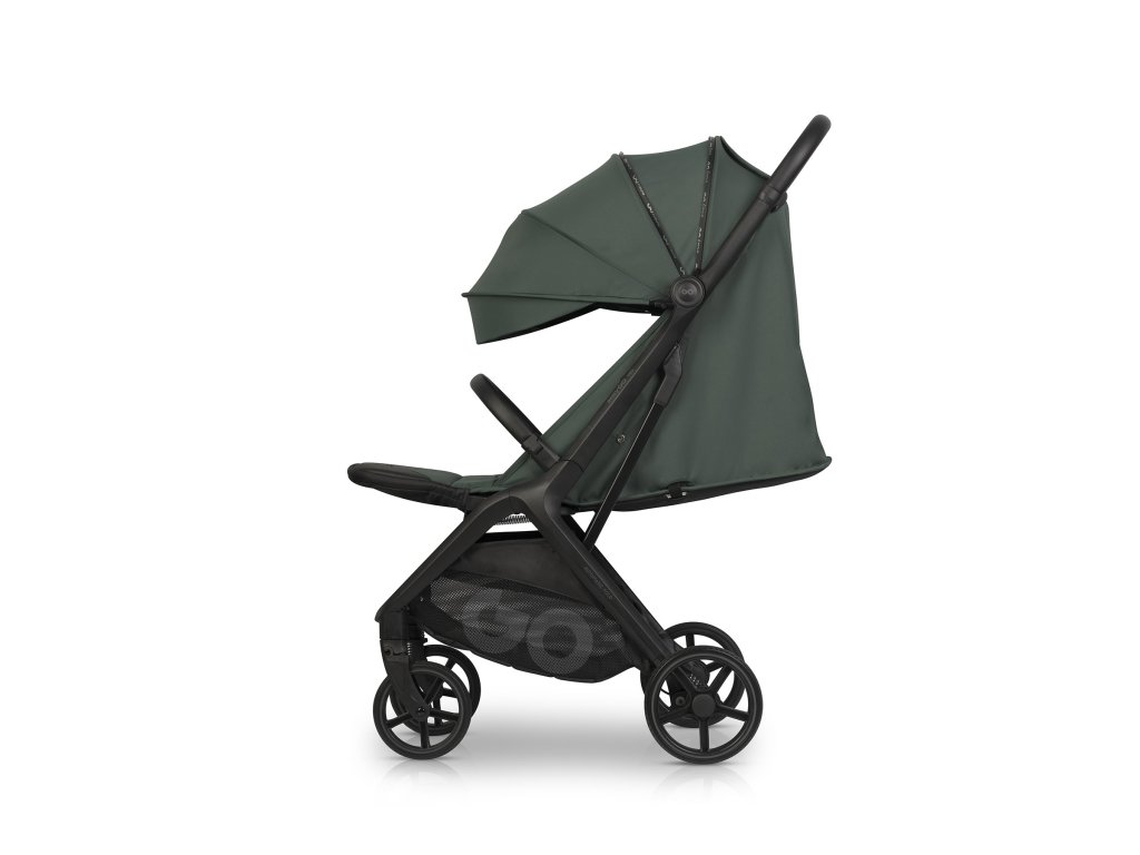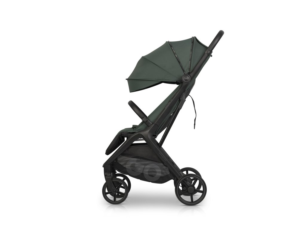 Praktické doplňky: Kočárek obsahuje prostorný košík, pláštěnku s větracími otvory, pohodlný kryt na nohy a transportní obal. Sluneční stříška má dvě rozšiřitelné sekce, které poskytují dodatečnou ochranu před sluncem, a v zadní části je velký větrací panel s okénkem pro kontrolu dítěte.