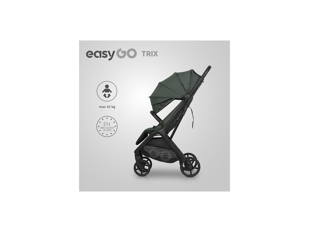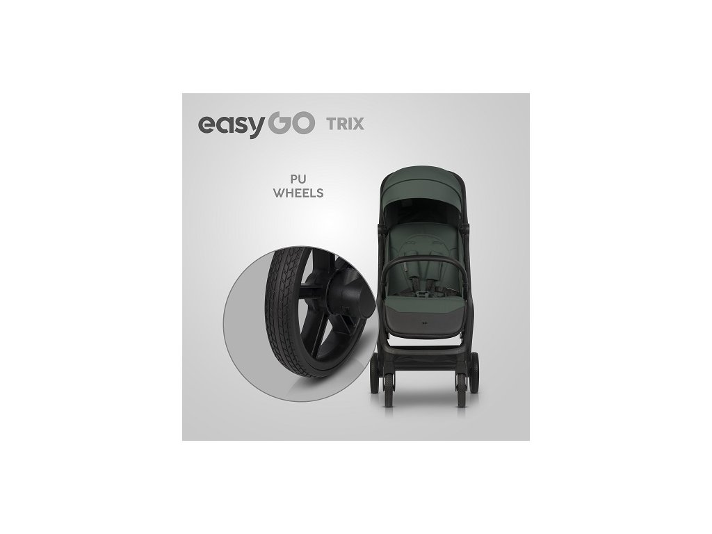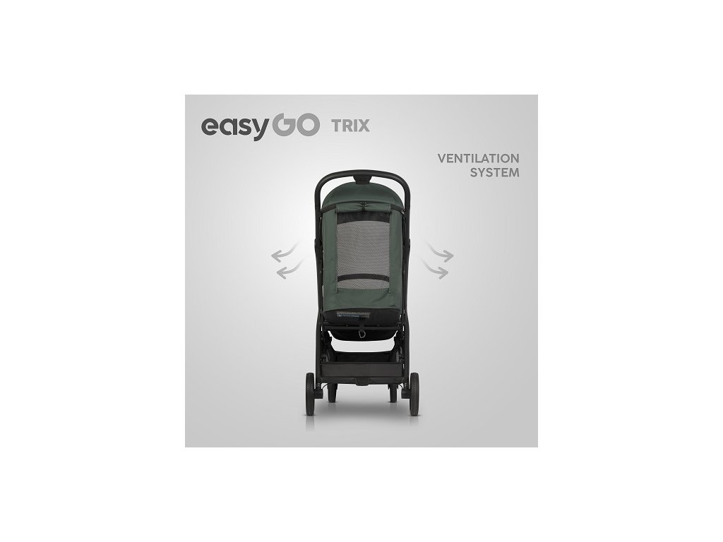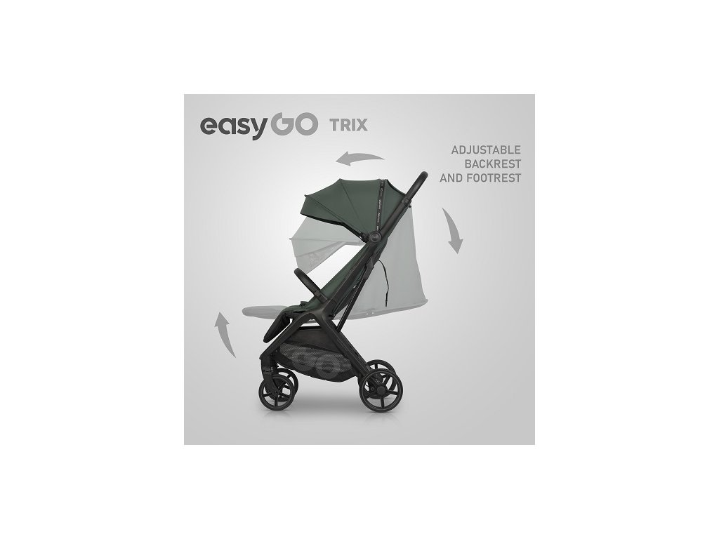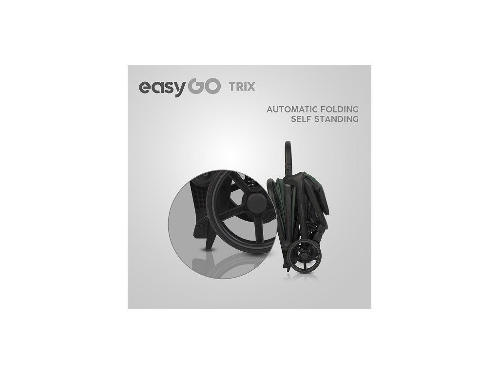 Inovativní automatické skládání: Kočárek EasyGo TRIX je vybaven automatickým systémem skládání, který umožňuje složit kočárek jednou rukou. Stačí uvolnit mechanismus na rukojeti a kočárek se sám složí do volně stojící pozice. Tento systém je ideální pro rodiče, kteří často skládají kočárek a převážejí jej v autě.